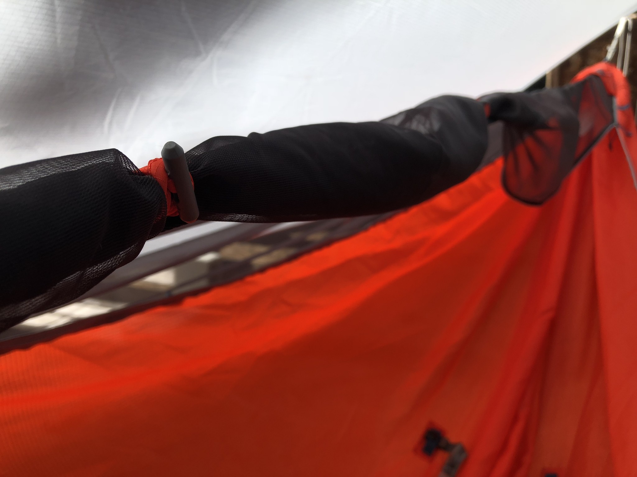 There are also a lot of little loops and pockets on the Flash Air, for hanging underquilts, small towels to dry, or other light gear items. Five small interior pockets help you to stay organized inside this hammock. We liked being able to put a headlamp in the pocket above our head to read at night, then placing our book into the more substantial pocket to fall asleep. The Flash Air also has an undersling for larger gear. We liked using it as a place to store our shoes at night to keep out the nighttime stalkers (think spiders and scorpions!). Unfortunately, you can only use it if you don't have an underquilt.