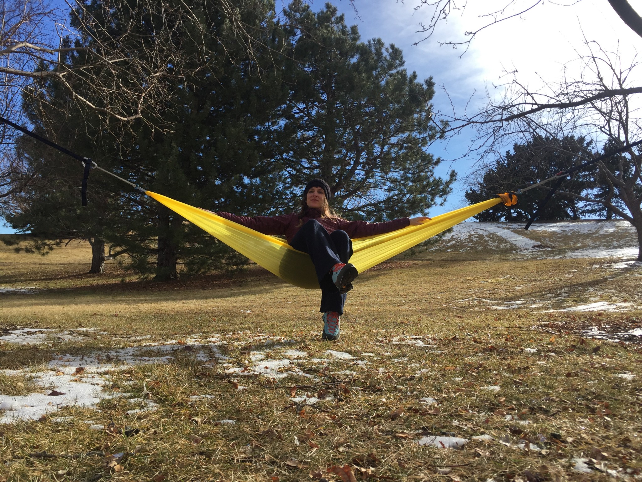 The Sea to Summit Ultralight is a solid choice for anyone needing a ridiculously light setup. It offers an integrated compression stuff sack that allows it to squish down to the size of a soda can and, if you get the dedicated suspension system from Sea to Summit, set up is straightforward and easily adjustable. However, if you don't need to stay ultralight, this hammock probably doesn't need to be on your shortlist. It's very thin, and its dimensions are small — so if you have a bigger build, too much bedding, or cold temperatures, you won't be a happy camper. This is a classic scenario of having the right tool for the job — if your job at hand involves being compact and uber light, this is a fantastic tool. But if your job is more in line with spreading out for a luxurious lounge or cuddling with friends, keep shopping.