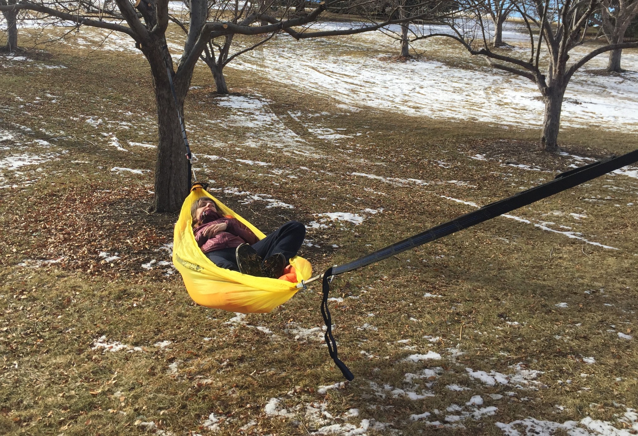 For how light, thin, and small the Sea to Summit Ultralight is, it's still fairly comfortable for smaller users — at least for uncomplicated sitting and lounging. Our main tester is 5'9" and felt fine in this 'mock but wasn't able to get a diagonal lay and felt cramped when trying to add bedding. If you plan to lounge and are comfortable sleeping on your back in a banana position, this is fine. But if you are much taller than 5'10" or need to lay on your side while sleeping, this might not be a good choice.