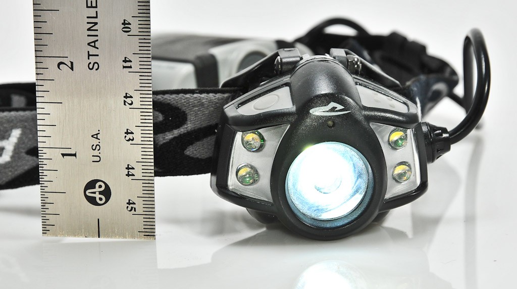 This is one of the top scoring headlamps for trail finding with a score of 9 of 10. The beam is powerful and even over distance, especially when the batteries are new. It's on par with both our Editors' Choice, The Coast HL7 (8 of 10) as you can see in the beam comparison photo below and it's closest rival, Black Diamond Icon also 9 of 10.