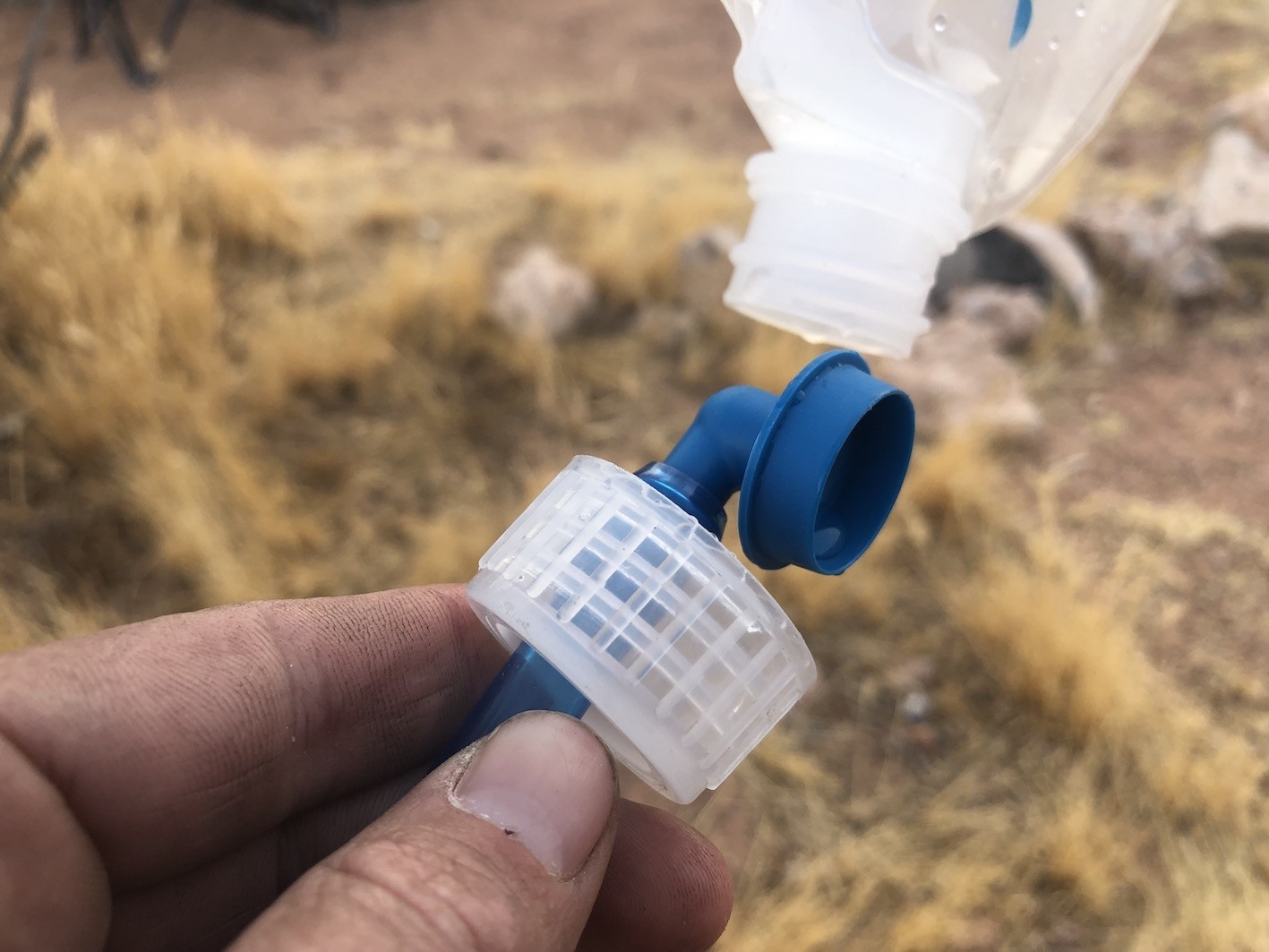 On a camping trip, we discovered that when trying to scoop up water, we could only collect a tiny amount from our water source. There was also a lot of silt in the water. In the end, we ended up scooping the puddle with a smaller cup we had on hand, then filling the bladder manually and using a water filter.