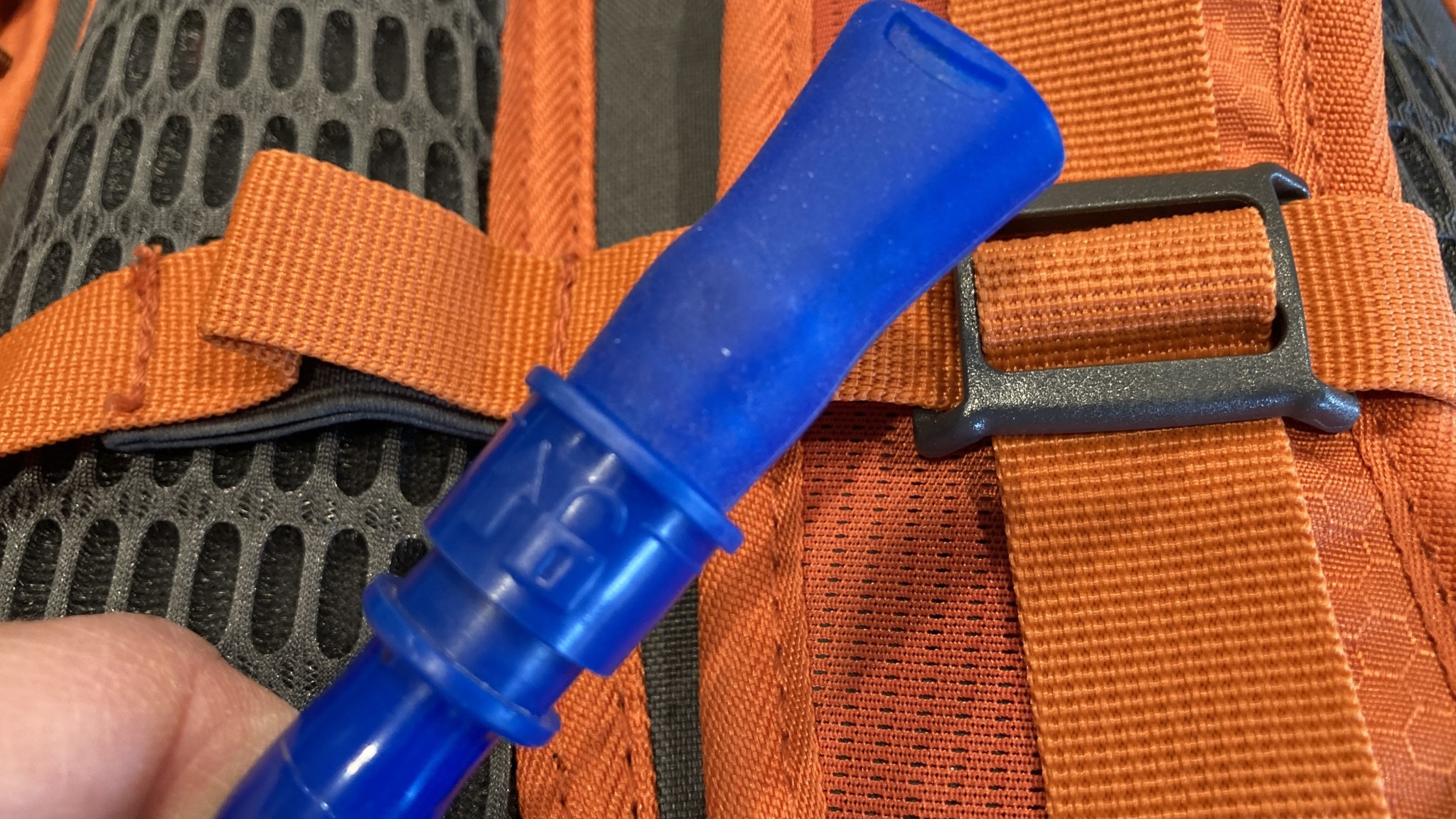 The hydration system's hose is long and the shoulder straps lack any hose retainer, allowing the hose to just hang and dangle unless we threaded it through the loop on the sternum strap — which then made drinking from it more difficult. After a few weeks of use, we noticed our water had an awful taste when we used the Oasis, so much so that we resorted to using the water bottle on our bike instead of sipping from the bladder.