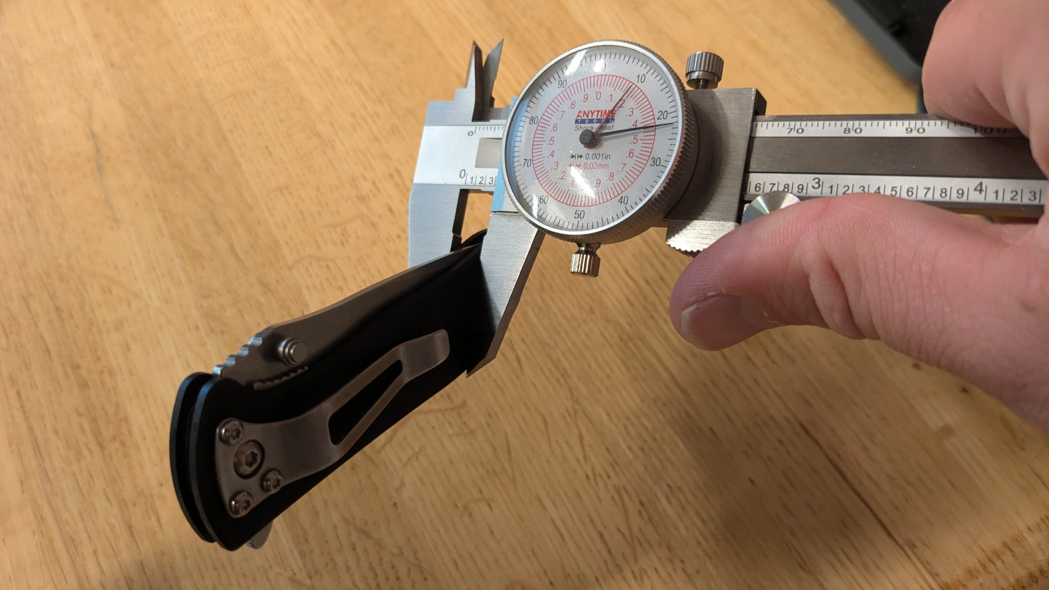 The thumb studs are also especially prominent on this knife, sticking out past the width of the handles themselves. In the pocket, these studs could tend to rub a hole through the fabric on either side. We should mention that, with the thumb studs and pocket clip removed, this would make an excellent 5th pocket carry.