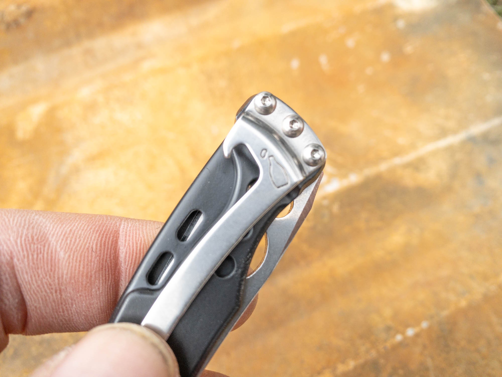 Leatherman put a nearly full-sized blade into a handle that is just a little too small for us. The blade is a great shape. It just needs a little more handle to drive it well. Further, deploying the blade is not ambidextrous. We overlook this in our best multi-tool review (it is virtually impossible to make a pliers-based multi-tool with an ambidextrous, one-handed blade) but know that knives are a different beast. A knife can easily be ambidextrous. Leatherman's adaptation of the Skeletool multi-tool format to a knife leaves a right-handed opener while the competition isn't bound by adherence to the multi-tool legacy.