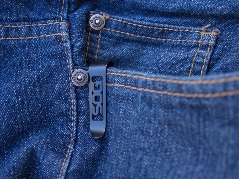 It compares favorably with the much smaller Editors Choice and is far lighter than its closest sub-category competitor. The lightweight construction of the SOG is the biggest attribute that tips the balance from the other tactical knives we have assessed. Some weigh more than 150% of what the SOG weighs. This is a significant difference and is easily noticed in one's pants. With no compromise in construction quality, the lighter weight of the SOG is a no-brainer for everyday carry. Finally, the SOG comes with a near-standard pocket clip. The pocket clip is unobtrusive and short. It holds the knife securely and ready in a front pants pocket.