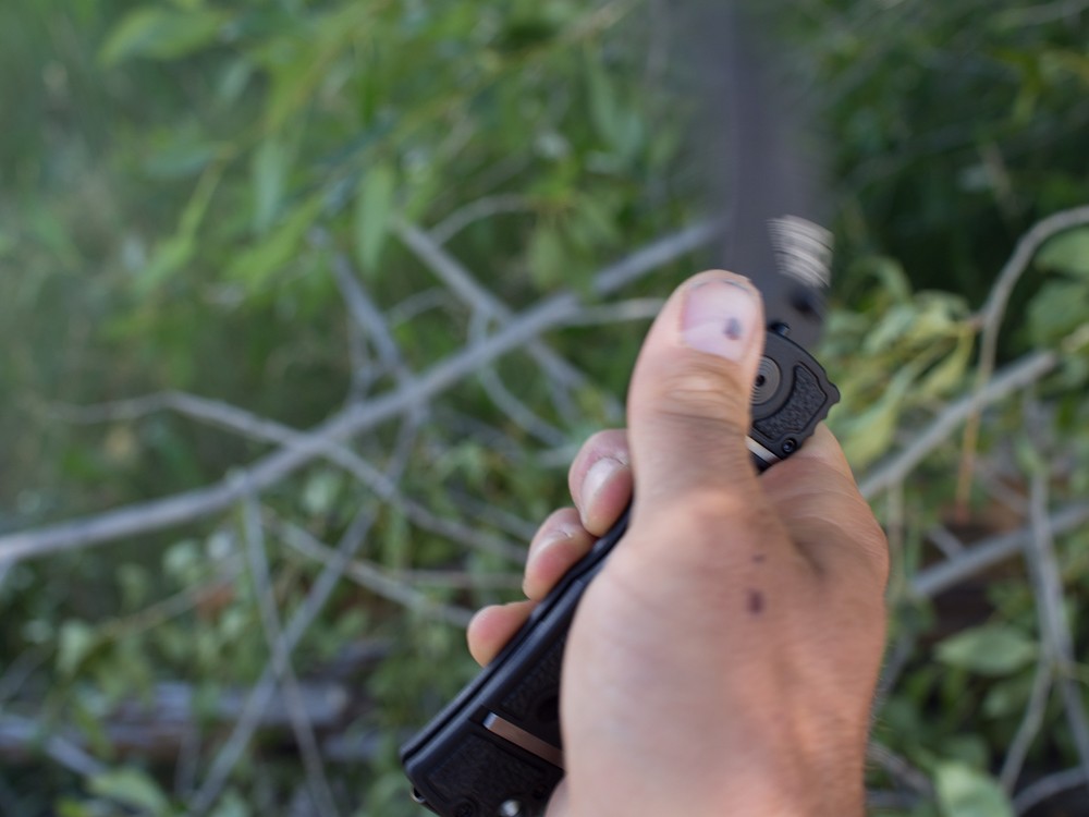 Sure enough, the corners are a little more square, and the locks and mechanisms are just a touch less smooth, as compared to the top scorers. The handle is slightly more squared off, and the locking mechanisms are less refined. For instance, the Editors Choice can be unlocked from either side of the handle, while the Trident only has an unlock tab on one side. In favor of the SOG is the blade-closed lock on the Trident. A simple metal tab on the side of the handle, the SOG blade-closed lock is easier to manipulate than other solutions we've tried. The sturdy blades and rugged marketing materials associated with these tactical knives encourage heavy usage. It is nice that the rounded plastic handle of the SOG is forgiving on the user's hands during such intense application.