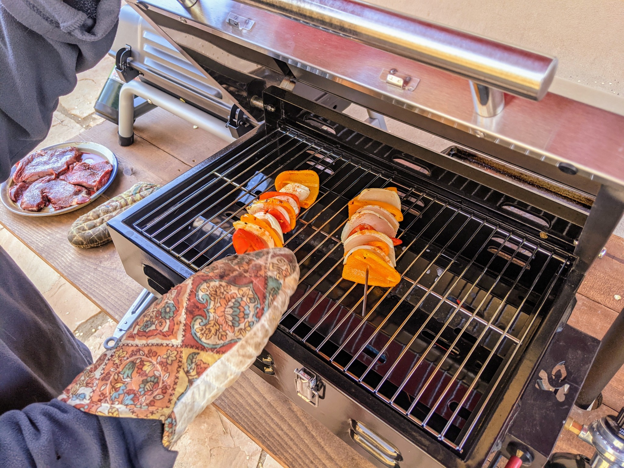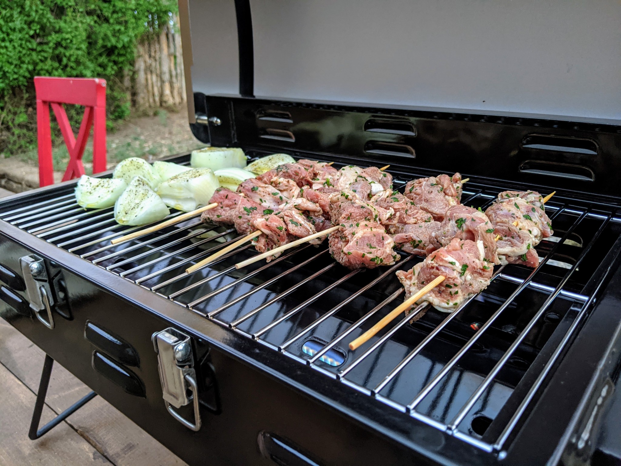 A functional 200 square inches of grilling surface is just right for a complete meal for two. If grilling just the meat course of a dinner meal, you can easily fit 4-6 servings on the Portable BBQ. If you are cooking a full meal for two, this grill will easily fit adequate portions of meat and veggies. Though it undoubtedly adds a bit to the size of the grill, this amount of cook space seems to be the sweet spot to balance portability and versatility.