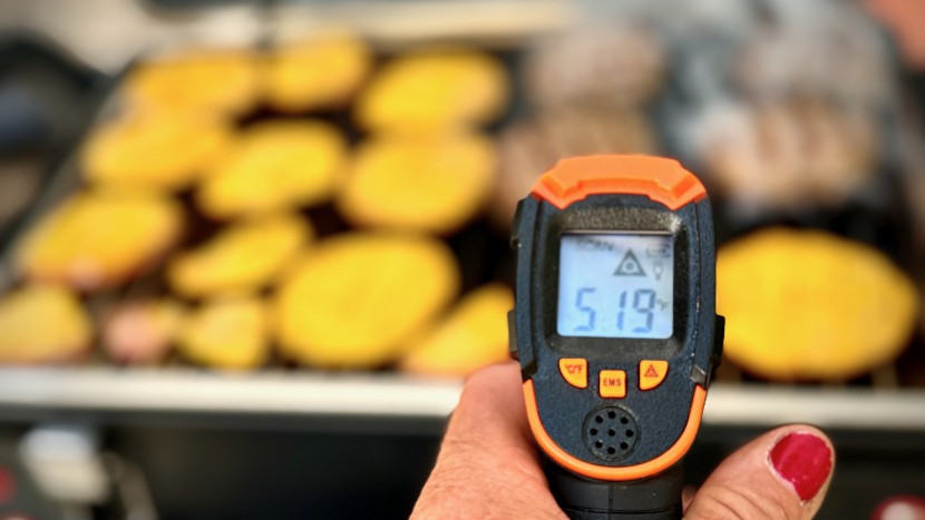 Control is a function of a thermometer, range of adjustment, and overall evenness of grill temperature. In terms of the range of adjustment, the Char-Broil Grill2Go has a relatively narrow and hot range. For red meats and simple burger-and-dog-type grilling, this is fine. Poultry and most vegetables do better with a lower temperature profile than the Char-Broil can supply. In terms of control and temperature range, we are happy with the lid. Some other “Infrared” grills can only be used without a lid, so the Char-Broil offers greater range and versatility.
