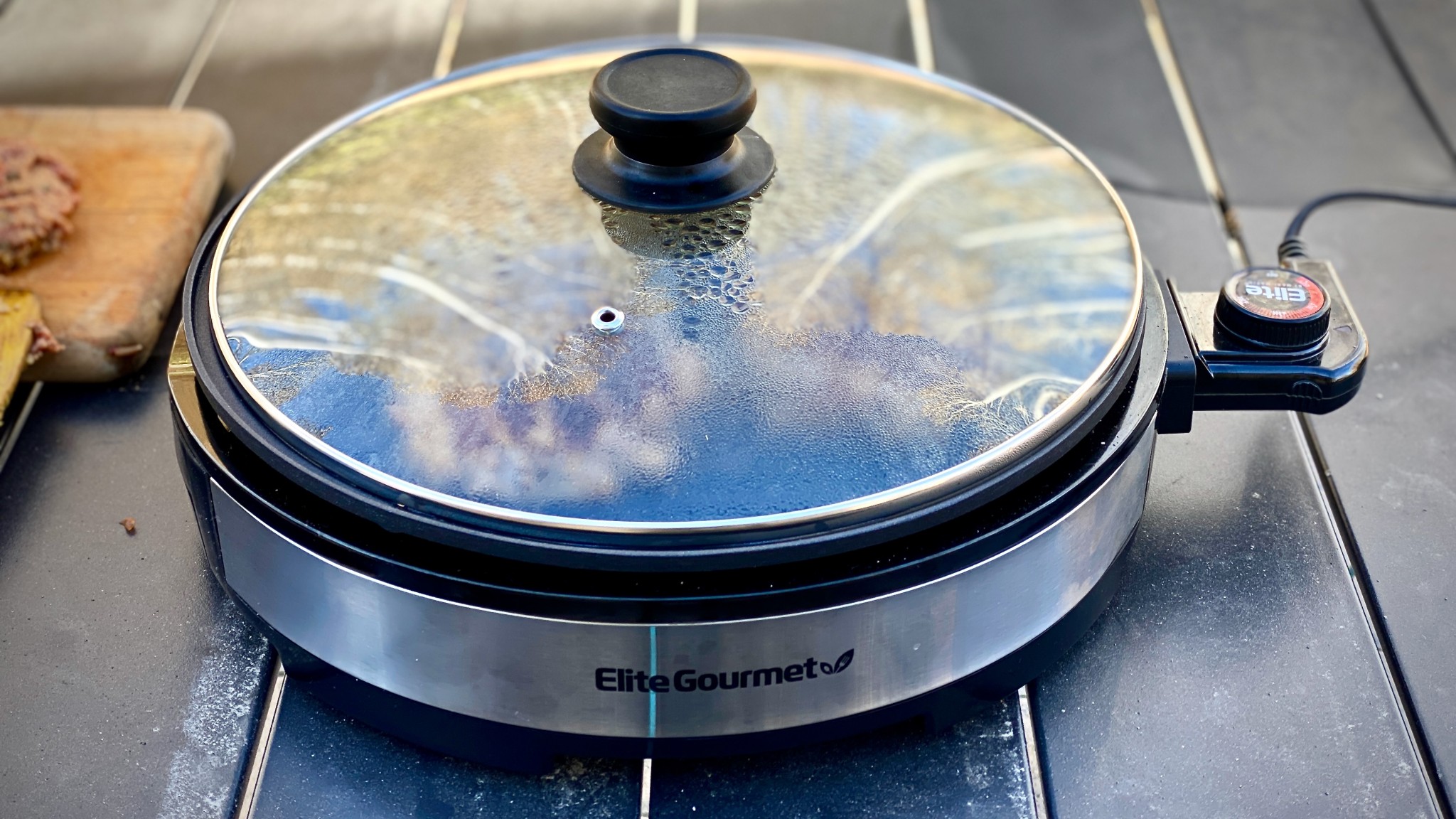 The compact size of the Elite Gourmet 12, unfortunately, and perhaps obviously, compromises its cooking area. Measuring only 12 inches by 12 inches, or 144 square inches, the size can be limiting if you're preparing an entire meal for a group all at once. However, our team easily prepared large meals for two people during our testing period.