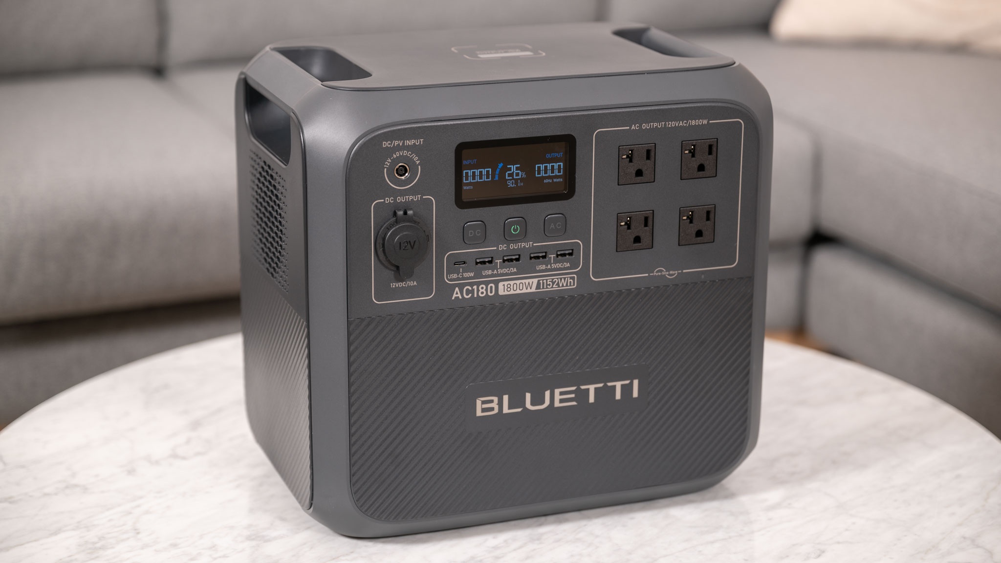 Since our testing, Bluetti has released the successor to the AC180, the Bluetti Elite 100 v2, which is a significant improvement. The Elite 100 v2 is smaller and lighter (25 lbs), sells for a lower street price, is quieter, and offers faster charging. The Elite 100 v2 does offer slightly lower battery capacity of 1,024Wh versus 1,152Wh for the AC180, but overall, we consider the Elite 100 v2 to be much improved and a better product. We've updated our retail links to go to the new and improved Elite 100 v2.