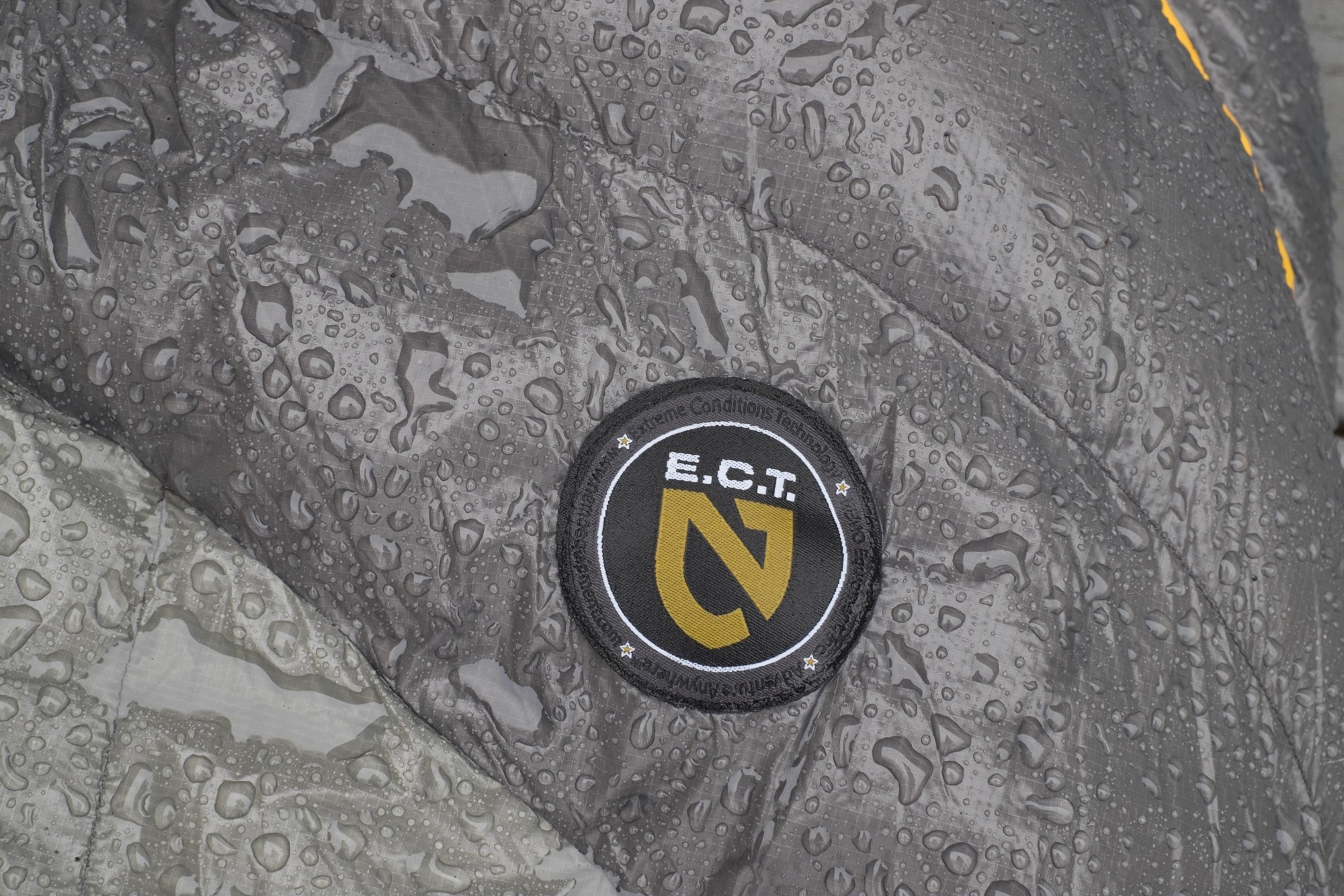 The Sonic's DWR-treated shell did an excellent job repelling water. In our light rain test, water beaded up on 20 denier nylon shell fabric and was easily shaken off, and the reinforced foot box absorbed very little water, even in our submersion test. This bag does have a hydrophobic treatment in the down. In our testing and experience, however, we find that a quality shell fabric is more important for maintaining loft and increasing drying time.