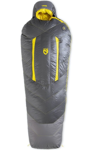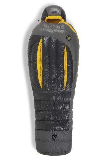While not the warmest bag, the hybrid baffle system - with vertical baffles in the upper two-thirds of the bag and horizontal in the feet - helps to keep your core area warmer and allows for the inclusion of the two vertical zippered vents. Nemo claims that these vents can change the temperature range of the bag upwards as much as 20 degrees. We felt this was difficult to test, but the vents cooled us down a little when they are open, without letting in cold drafts around the feet like when you use the side zipper to cool off in a conventional bag.