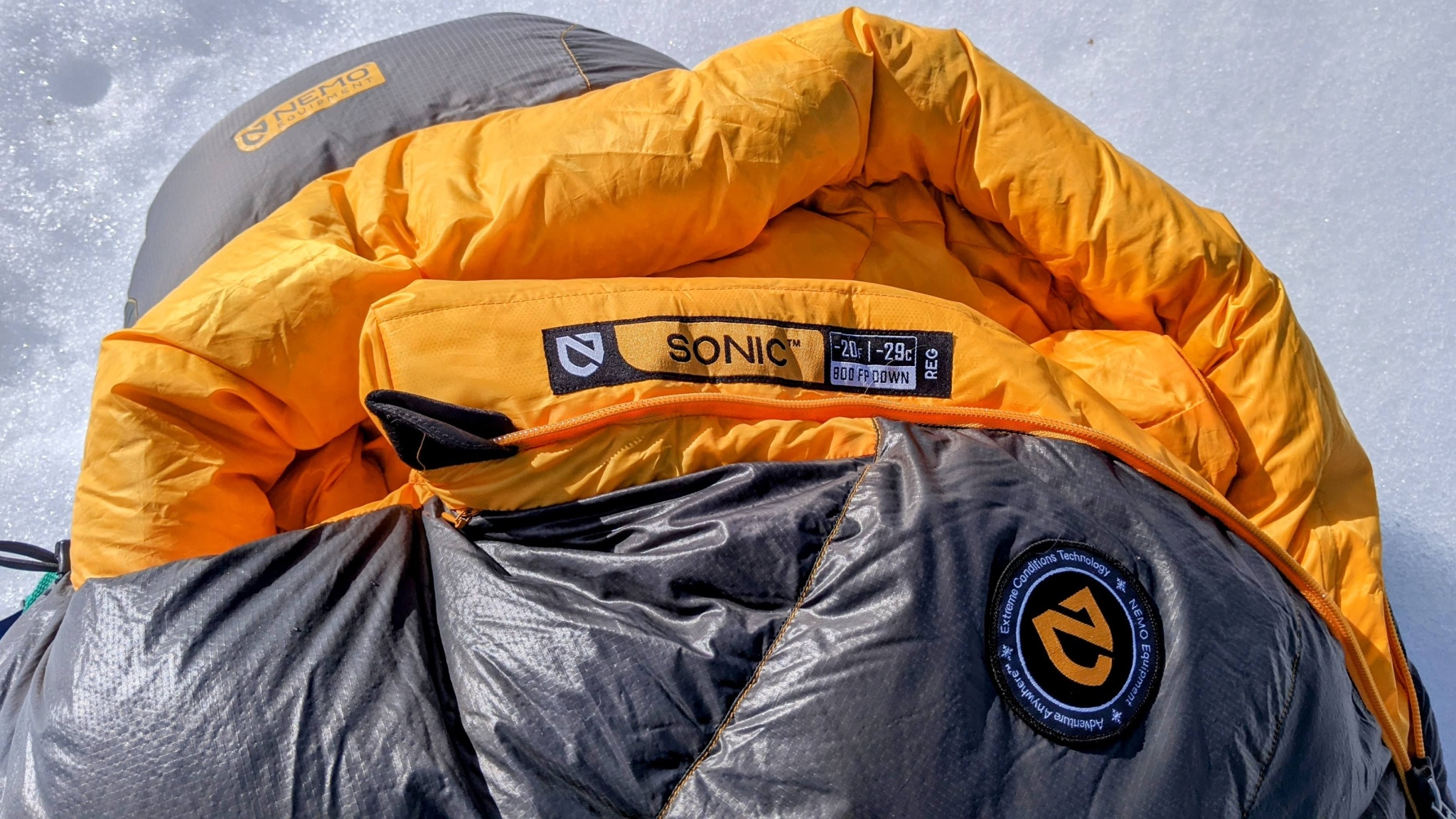 The size regular Sonic -20 weighs 3.7 pounds, and Nemo claims it's stuffed with 2.3 pounds of high-quality, 800-fill power down. While 800-fill power down offers an exceptional warmth-to-weight ratio, some other highly rated bags use even lighter and warmer down at 850 or 900+ fill power. And several of the 0°F options we tested are about a pound lighter than the Sonic.