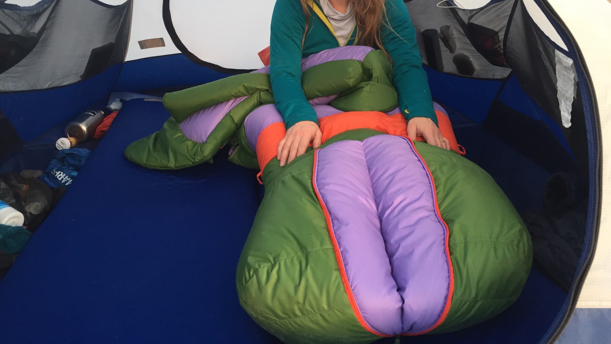 The roominess increased this bag's comfort. However, it does mean more cold air to heat up and therefore potentially less warm. We like the cozy hood. This year the foot box has changed and has an extra zipper to open it for more space. We don't really think this feature adds significant comfort because the area around your legs stays constricted. It also had plenty of room in the shoulders to move around and add extra layers if necessary. We find the Angel Fire's extra zipper unnecessary as it detracts from the comfort most of the time. It is nice if you want to take your arms out of the bag and hang out in your sleeping bag, but we didn't find ourselves doing that much. We also didn't like that the second zipper would poke us in the face when mostly done up.