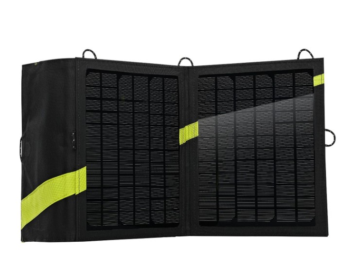 This panel has the largest built-in storage for your extra batteries, phone, and cables. The downside is that compartment is always partially filled with extra cables that you may or may not need to use. In addition, it's a bit of a bummer that such a large panel can only charge one USB device. To charge another device you need to buy either a Goal Zero battery pack or an additional adapter.