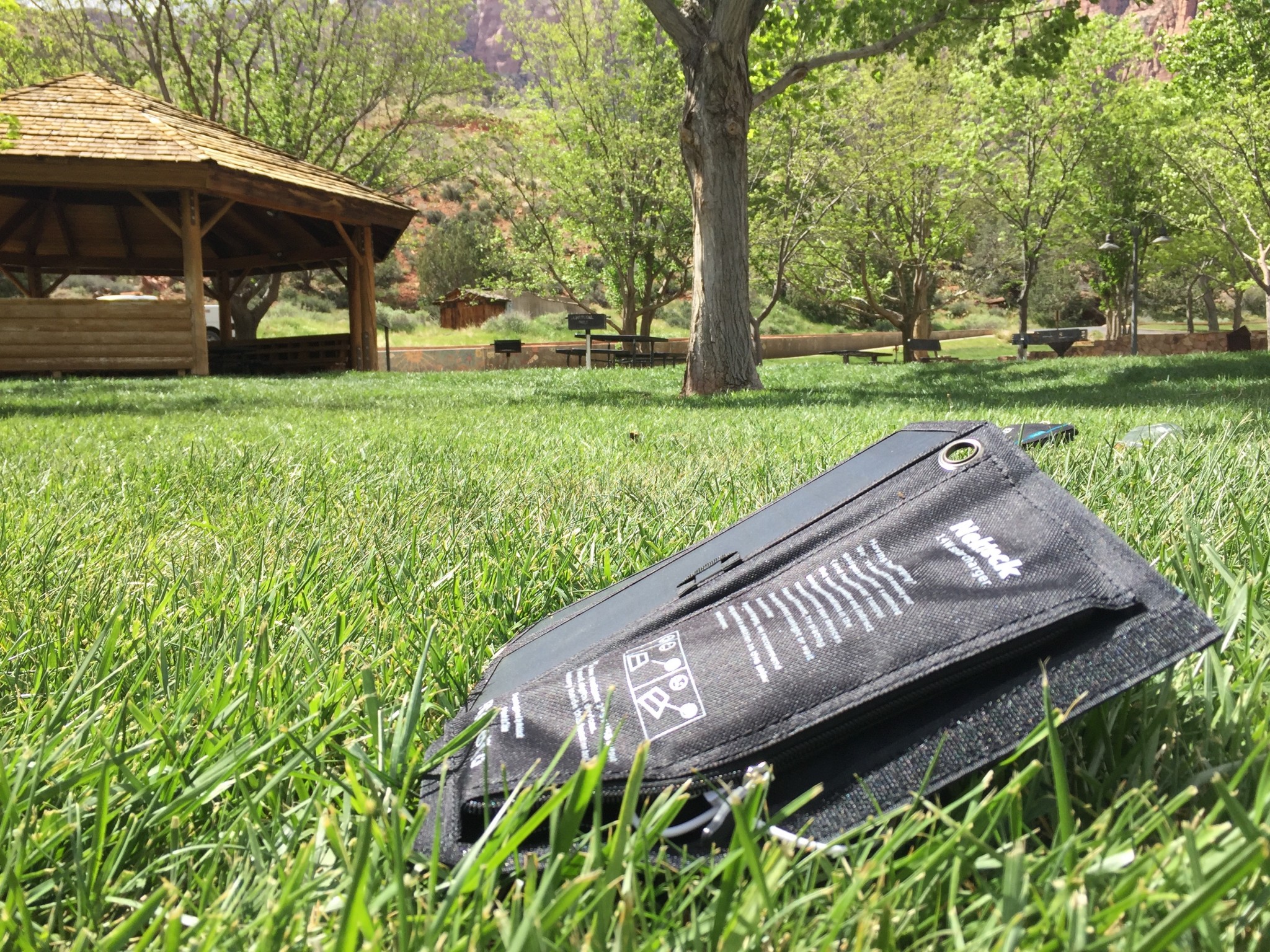 The Nekteck scored highly in weight, as it is lighter than the bulky Instapark Mercury 10 and more compact both the Anker 15 and the Instapark Mercury 10. It weighs in at 14 oz, which is around 2 oz heavier than the Anker 15 and 2 oz lighter than the Mercury 10. Weighing less than 16 oz puts it in a lightweight class, as the majority of the large capacity panels weigh 16 or more ounces. The Nekteck has two panels and a sleek storage pouch. It is very thin when folded up which makes it easy to carry. It fits into a backpack or on the bottom of a duffel bag without too much impact, making it a great panel for travel.
