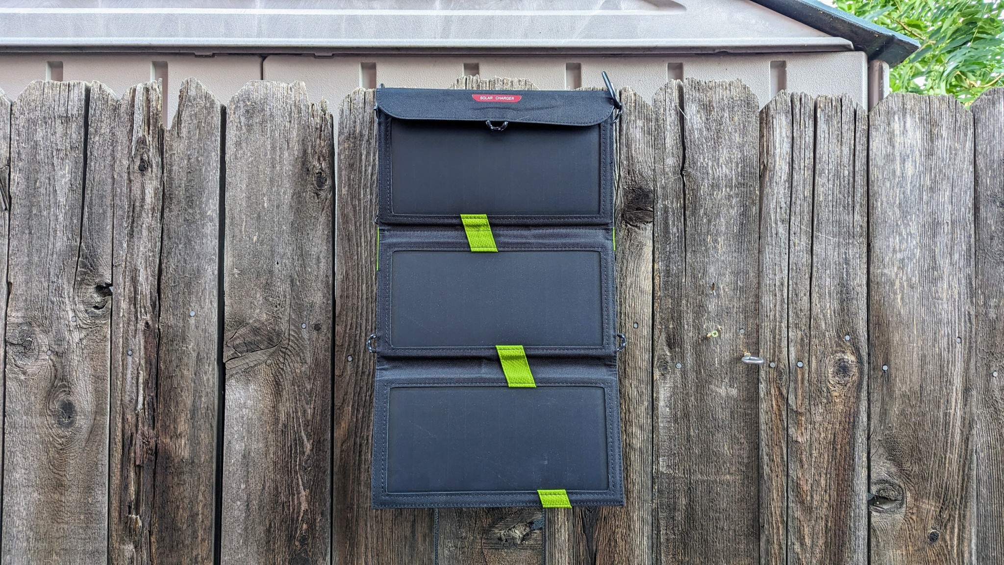 It has several loops to hook carabiners to, so you can hang this panel off your pack while you hike or off your car or tent in camp. It also comes with four carabiners, which makes hanging it anywhere easy.