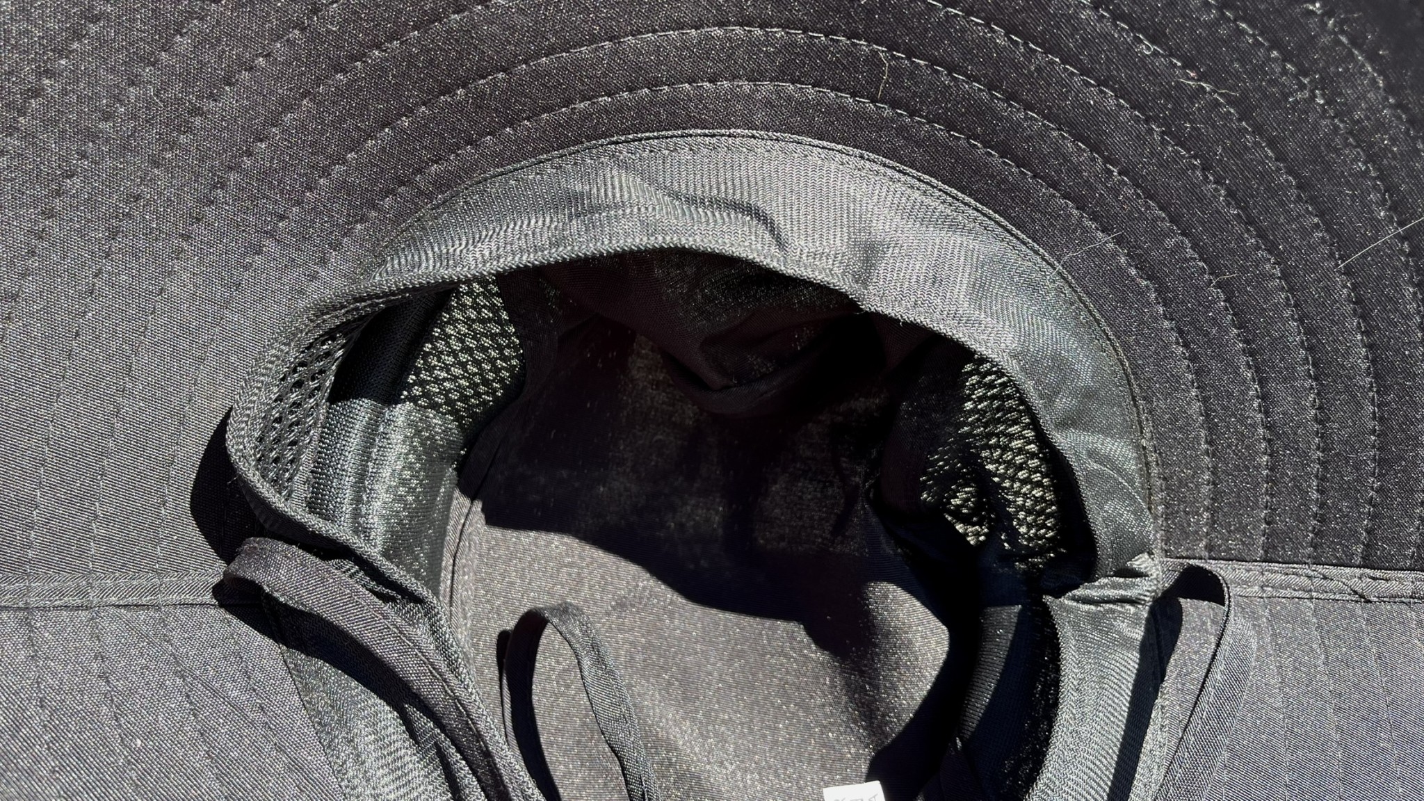 The generously sized brim is slightly coneshaped, which helps fend off the rays for longer throughout the day than a flat-brimmed hat. It's also slightly bent in half, turning the back side of the brim into a faux cape. It's subtle, but we appreciated the extra neck coverage when the harsh afternoon sun was beating down on us.