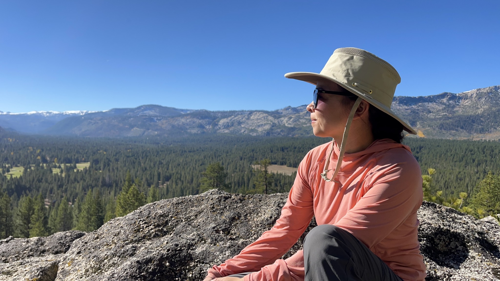 The Tilley underwhelms in sun protection. While the brim provides ample coverage in the front, the sides are short, leaving much of the cheek and neck exposed. As the sun gets lower, the flat brim becomes less effective.