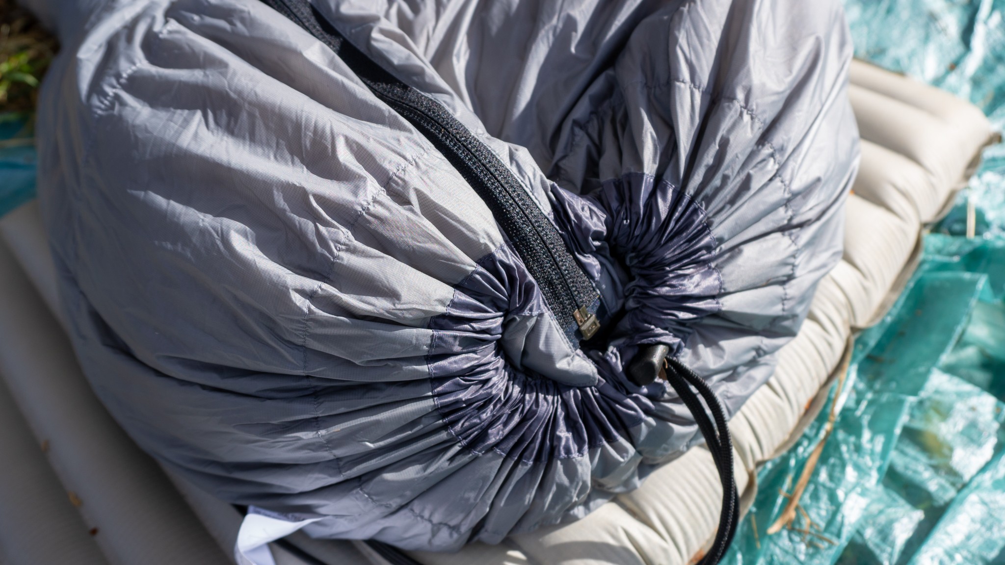 Besides the full-length zipper, we love how well the foot box drawcord works on this bag. With one pull, the Flicker goes from a fully flat blanket to having a completely enclosed foot box. Unlike similar designs, there is not even the smallest hole left in the bottom of the bag for air to escape, and we found the drawcord easily stayed tight through many nights of usage.