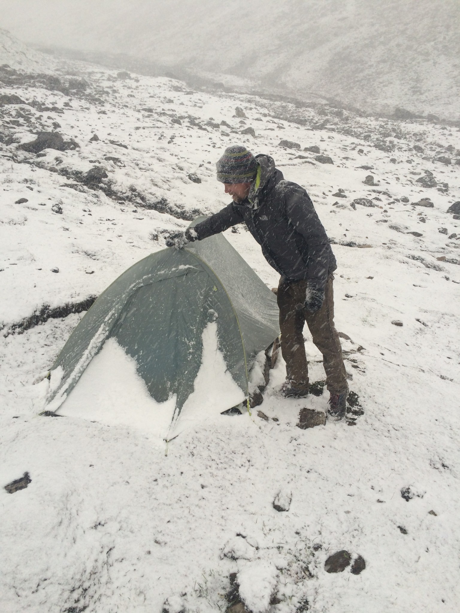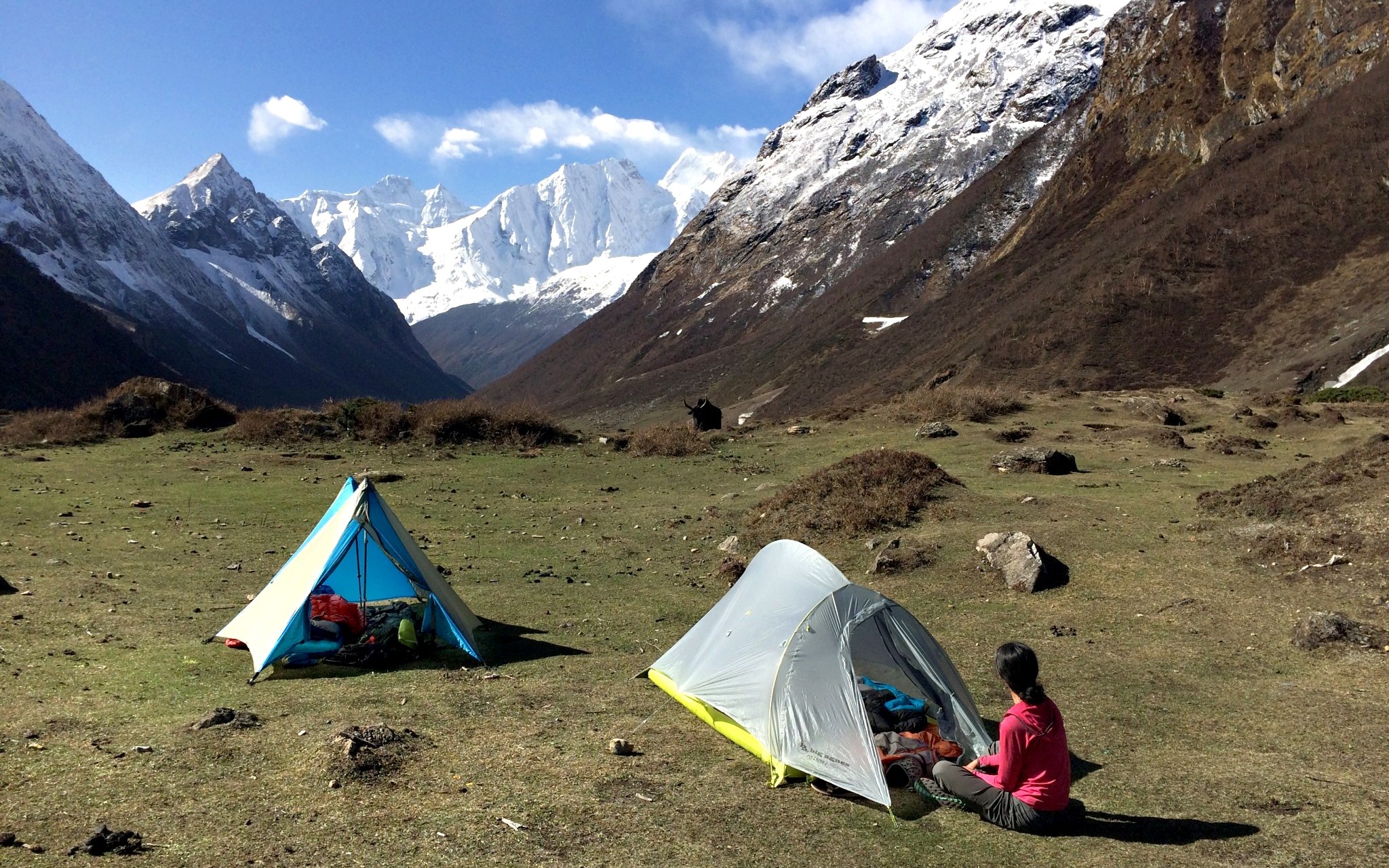 Like most double-wall tents, it can be set up either with the rain fly on or without on nights with clear weather, as we often did. Used this way, we like how the whole inside the tent is just mesh, which allows us great views before falling. As we discovered in Nepal, you will certainly survive a night out in the snow in this tent. However, it is necessary to constantly bang at the sides to shed snow, as too much of a load will cause the triangular pole system to torque, and the tent will collapse. This scenario could mean that you may not get much sleep!