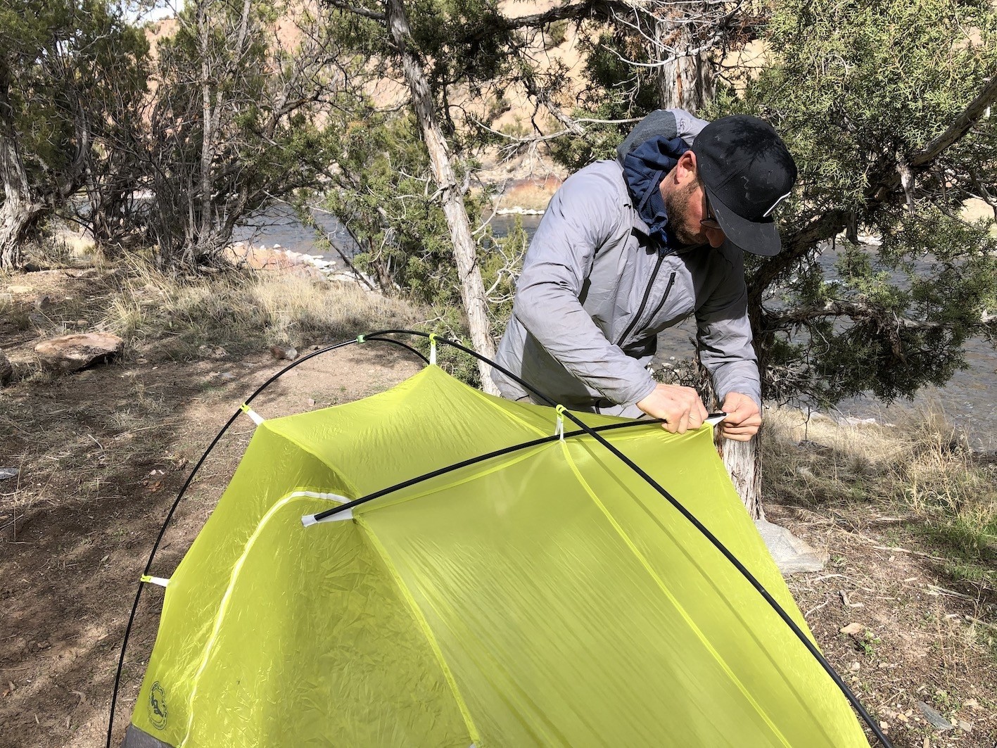 We primarily tested in softer soils but also set it up over rocks and slabs. We found this to be incredibly difficult, but in the end, we managed to get it to stay taut and locked down after using additional cordage and rocks from around.