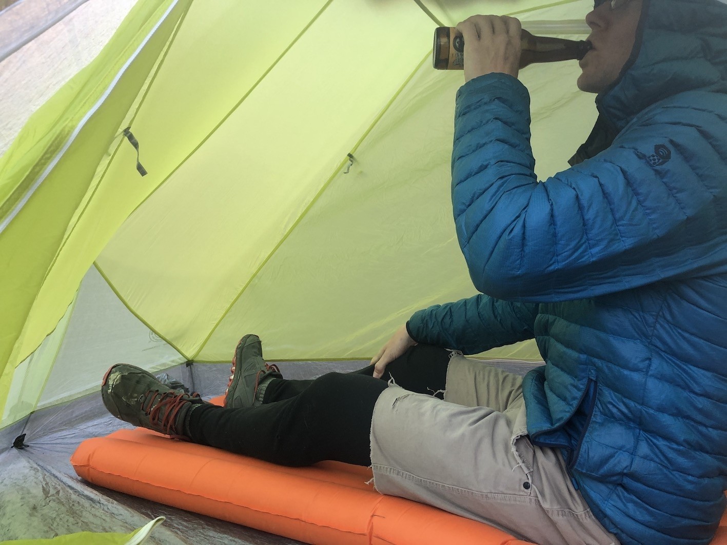 We took this tent with us on many adventures, and it quickly became a favorite. This is largely attributed to the 27 square feet of space, eight square feet of vestibule space (there are two vestibules), and headroom high enough to provide our 6-foot testers room to sit up fully. It has a peak height of 39", which is plenty of headroom.