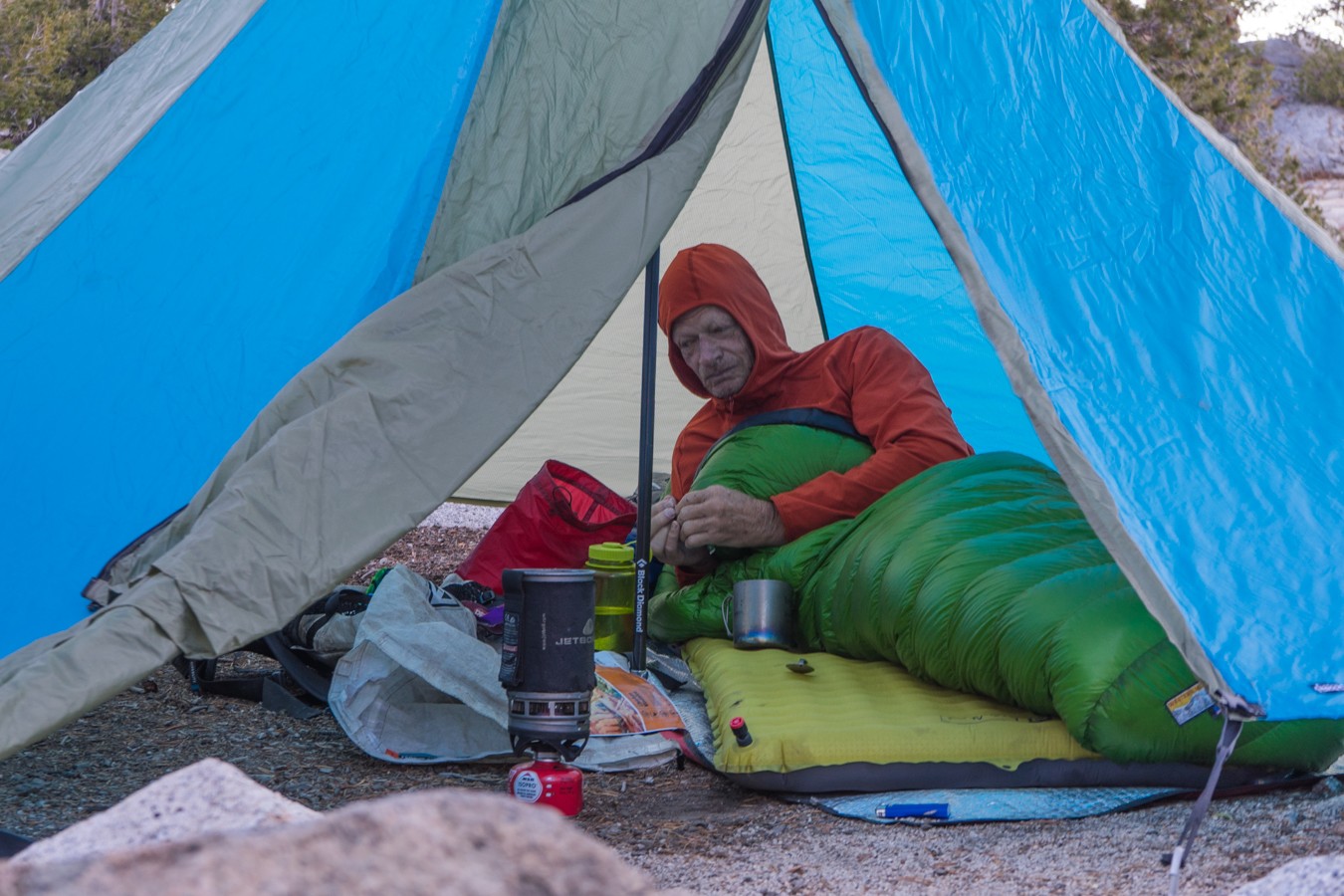 Fifty square feet of living space is pretty posh for an ultralight tent; one or two can inhabit this area with plenty of room to spare for gear and cooking space. No tent manufacturer recommends cooking inside a flammable, meltable tent, but in bad weather, it can happen. Without a floor and a high center, we feel decent preparing meals inside this design, especially in windy conditions. There aren't many bells and whistles attached to this pyramid, but there are a few features that score it some liveability points.