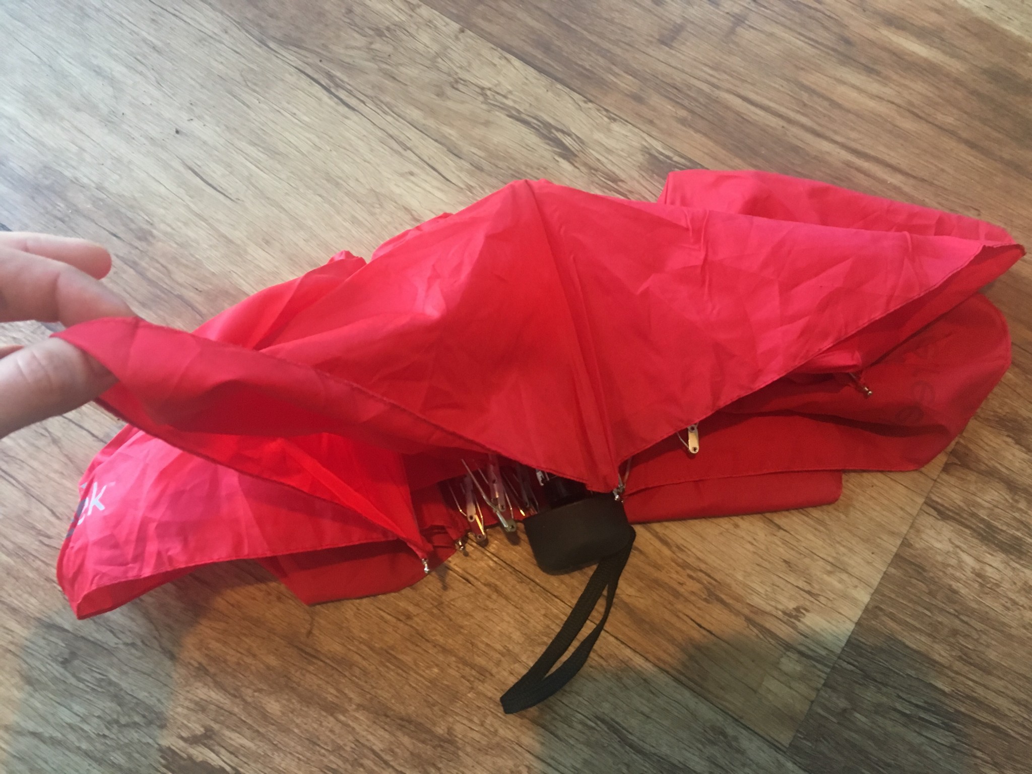 When you collapse the umbrella, it is so small that it is challenging to get all of the folds of the canopy to bunch together into the tiny sleeve. This bunched up fabric also makes a lot of nooks and crannies that hold water, and we found that we often tracked more drips inside with this umbrella than with others.