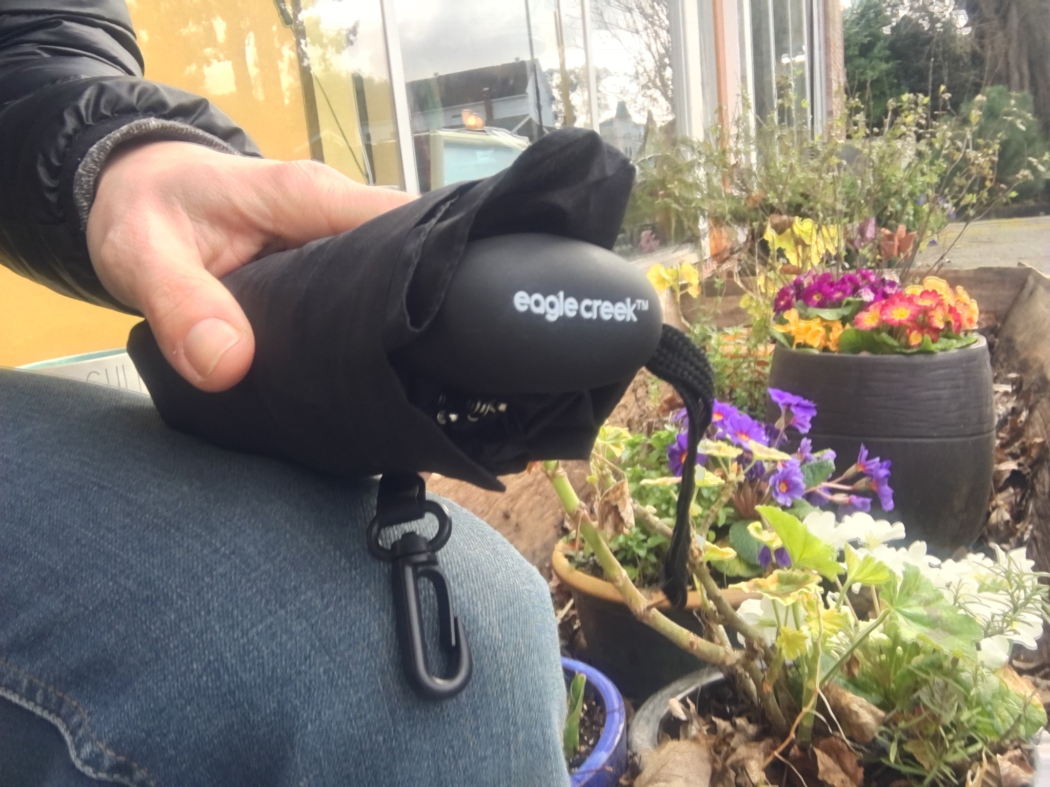The Eagle Creek is a great light umbrella if you never plan on using it. If you're traveling in an area where you don't have wind and you don't expect rain, but the consequence of getting your nice clothes wet is pretty severe, this might be a great choice for you.