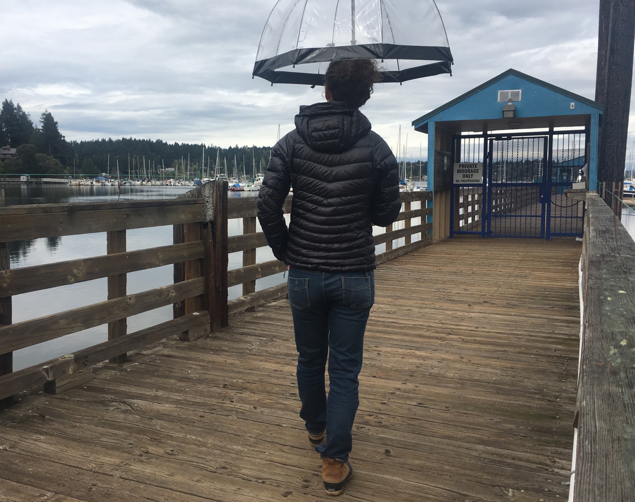 In our Rain Test, raindrops hit our clothing at the forearm and thigh. Overall, this performance was not notably better than a collapsible umbrella. The 33-inch diameter canopy with 16-inch depth allows you to nestle inside the Birdcage and blocks wind and rain completely for your upper body. This also keeps the wind from messing up that hairdo.