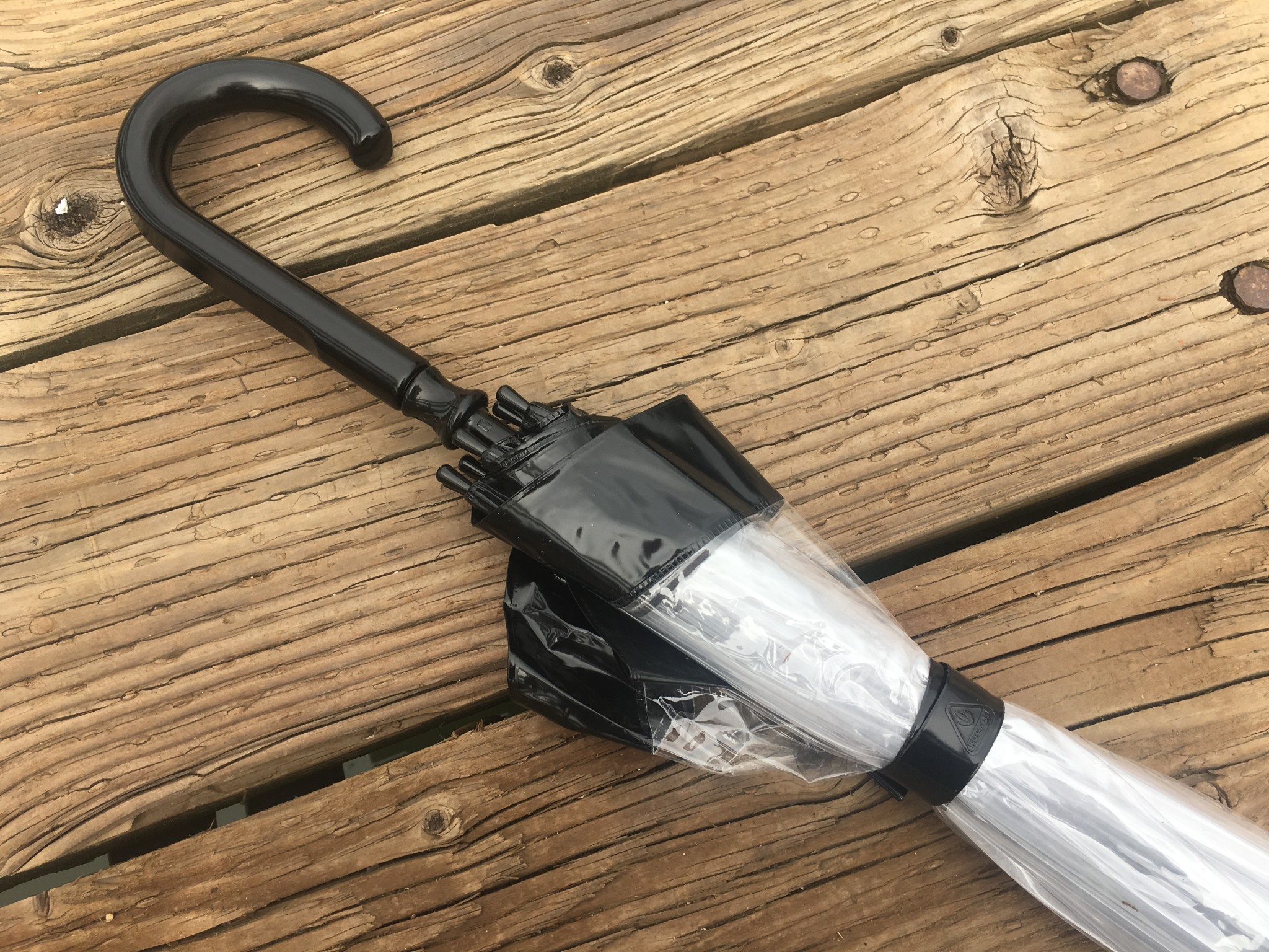 If you're using the Birdcage, you're committed to obviously carrying an umbrella. This is a fixed length shaft umbrella, over a yard long (or, if you're British Royalty, that's nearly a meter long), with a crook handle. There's no hiding this umbrella in your briefcase, book bag, or purse.