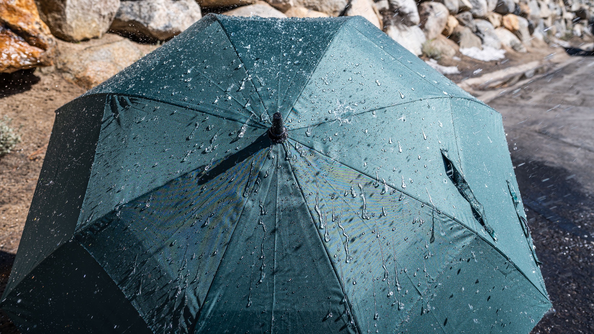 The fiberglass shaft of the G4Free is relatively thick, which certainly instills confidence in us. The overall construction seems well done, and nothing ever rattled or felt like it would snap from casual, general use. During our wind test, the canopy inverted at 20 mph, which is actually better than most umbrellas. With the canopy pointed directly into the wind, it collapsed at around 40 mph, which is also rather impressive. The structure didn't suffer any damage, either.