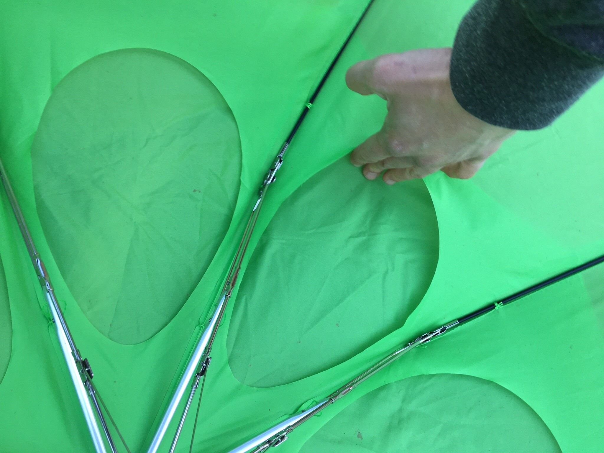 When we first saw the GustBuster, it raised a number of durability red flags: we saw a lot of loose threads and unfinished fabric edges, and many of the attachment points of the ribs to the canopy are fixed with a few thin pieces of thread.