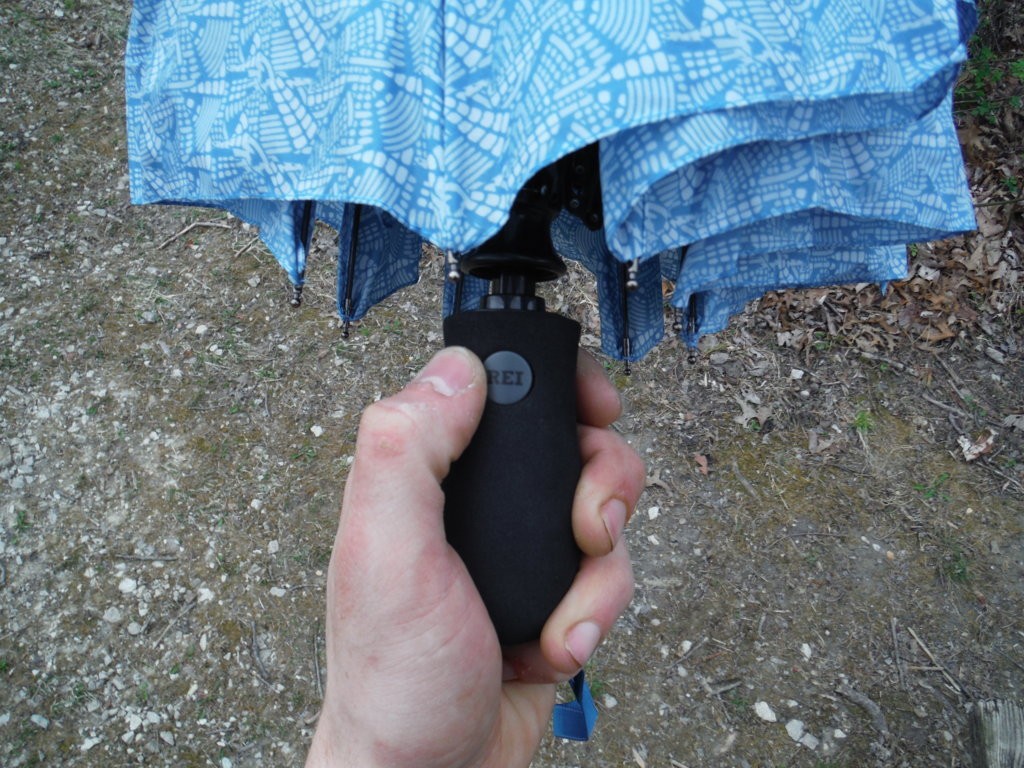 The REI Travel is simple to use. A small button on the handle extends the stem, and then opens the canopy. To close it, you push the button again which collapses the canopy, and then you have to press down the top of the umbrella to collapse the stem.