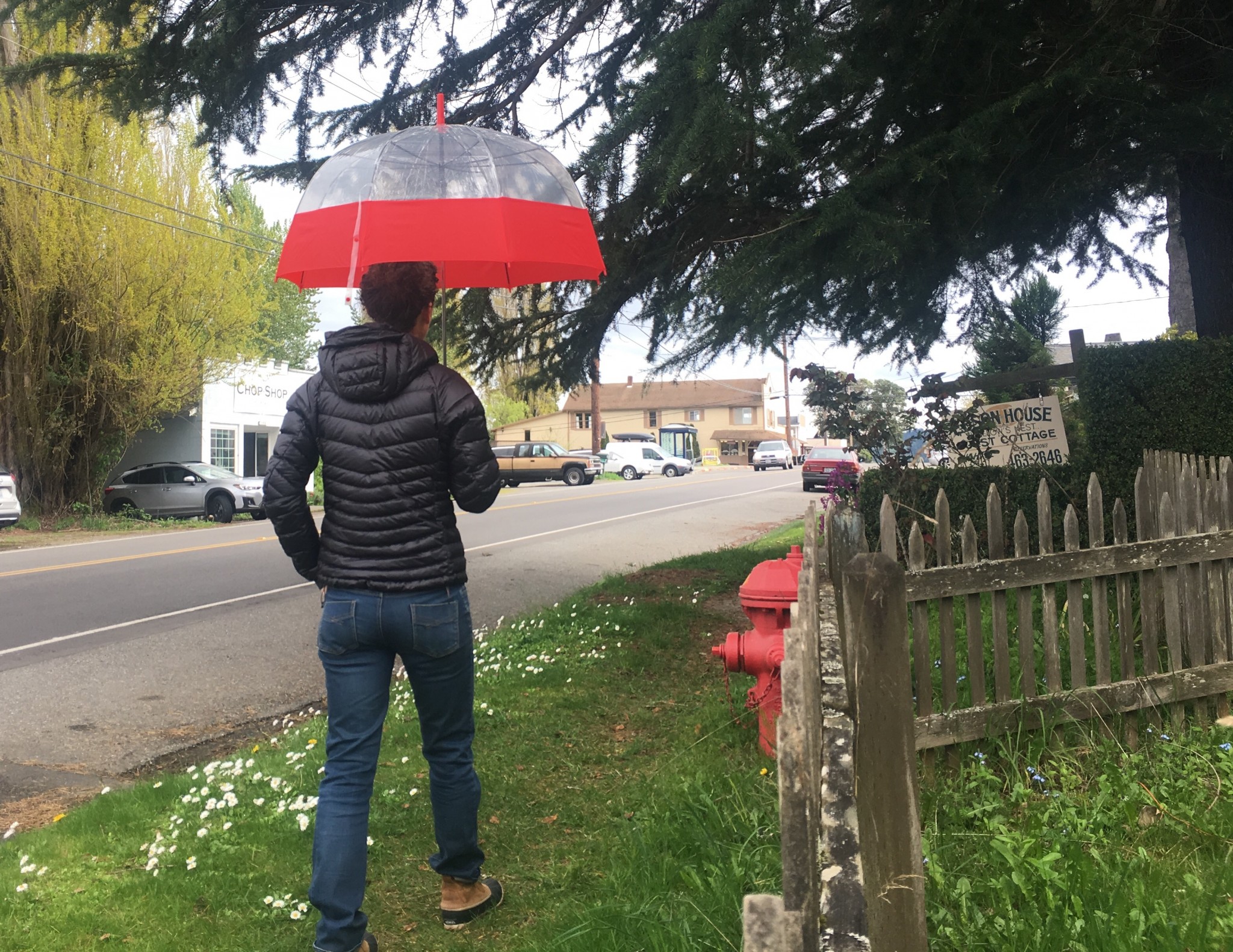 The Bubble is a large, fixed-length umbrella. As such, it's a bit of a commitment to carry it. This is not a compact umbrella that will collapse and fit in your bag—but it has that classic crook handle so you can hang it off your forearm, or on a chair or doorknob. The ShedRain is a full yard (36 inches) long and weighs in at just under a pound.