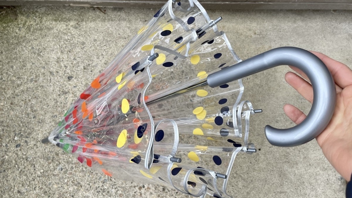 The Clear Bubble has a classic, straightforward design for opening and closing the canopy. A sliding collar moves up and down the stem to open and close. The collar locks securely into place when the canopy is fully deployed, which means the collar won't dislodge on its own and cause the user to become exposed to the rain. Additionally, the cane-shaped plastic handle is easy to grip and long enough to allow both hands to be used at once, which is of great help when the wind picks up and tries to steal the umbrella away.