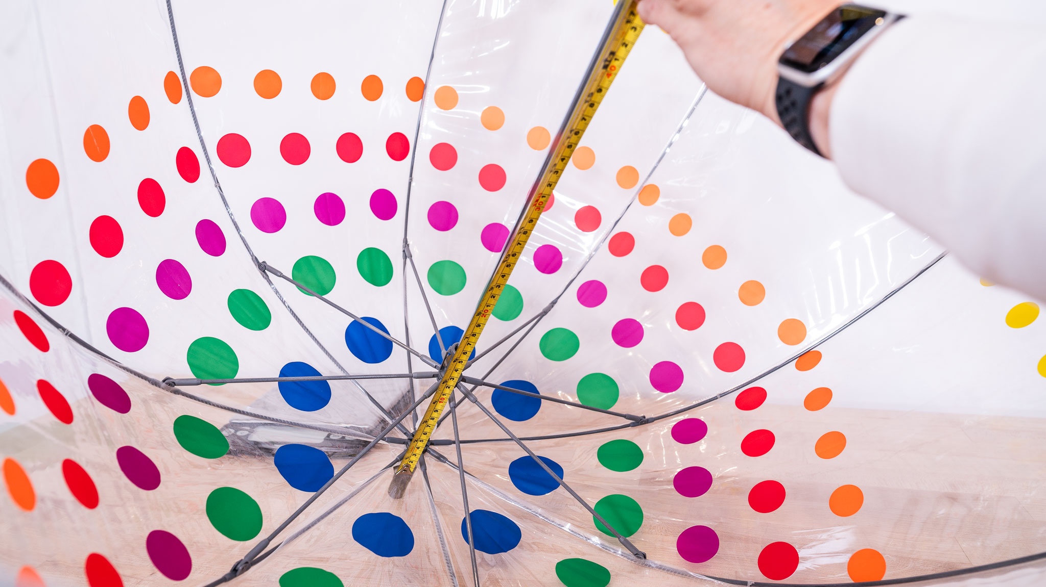 With a 33.5-inch diameter, the Clear Bubble has one of the narrowest canopies of all the products we tested. We had to pay close attention to the length of our stride so our legs wouldn't extend too far outside the protection of the canopy and become soaked. Despite this smaller diameter, the bubble design of this umbrella forms a hemisphere that is deep enough to fit over the head and shoulders — a depth of 16.75 inches, which our testers found to be very advantageous. If the wind picks up and the rain starts coming in sideways, you have the option of ducking inside the bubble canopy and at least saving your upper body from being soaked. However, if you are going to hide inside the bubble, there is a chance that the canopy will become foggy from body heat, forcing you to tip the front end upwards and thus reducing its actual coverage area.