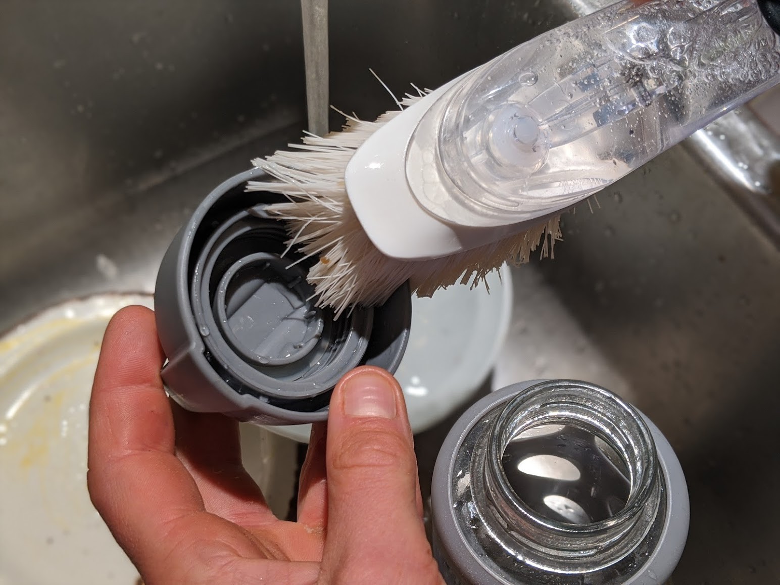 When it comes to cleaning, the Ello presents a few issues. The lid, which is simple and fairly foolproof on the outside, has a fairly complex underside that is tougher to effectively clean. There are two deep crevices that are hard to get into and clean thoroughly, and a gasket that is buried so deeply, it is almost impossible to remove without tools. Additionally, the bottle's narrow mouth presents another issue, as it's too narrow to fit wider cleaning tools. These issues are manageable with a dishwasher, though, as the entire bottle is dishwasher safe. And a bottle brush should work fine with the narrow opening.