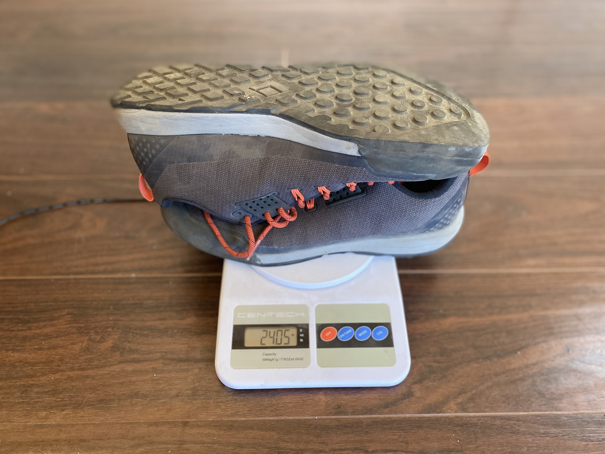 While not the absolute lightest shoe we tested, it's in the top 5 and makes a great choice for those who need a decent shoe that will be regularly clipped to their harness. Our pair of size 10.5 US Men's weigh 24.1 oz.
