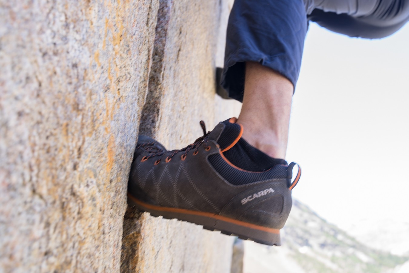 The Scarpa Crux climbs very well, thanks to its medium-stiff sole, sticky rubber, and precise toe box design. These shoes provide more confidence on dicey rock moves than most other models on the market. They climb almost as well as the top climbing performers and do it at a much lower price. If you need the best climbing performance for lots of 5th-class climbing, these might not perform as well as you need, but they're great for most terrain.