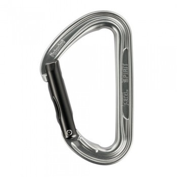 The Petzl Spirit straight gate is a cold forged solid gate carabiner with a keylock design. It weighs 39 grams (1.4 ounces) and has a 22 mm wide gate opening.