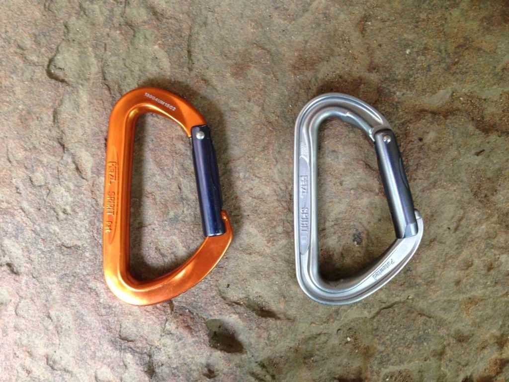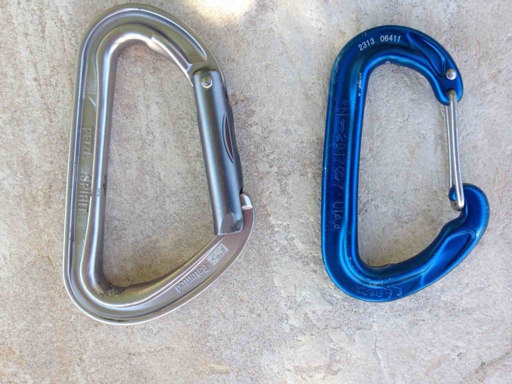 The Petzl Spirit straight gate's opening is only 21 mm, which is relatively narrow compared to its size. The Camp Nano 22 has the same size opening (due to being a wiregate), even though it is much smaller overall. So, while the basket of the Spirit is deep enough to hold several knots or slings, it can be difficult to open the gate once you have a cordallete bundle in there, or several rope anchor points. This is another reason why the Spirit is more suited to sport climbing than traditional climbing.