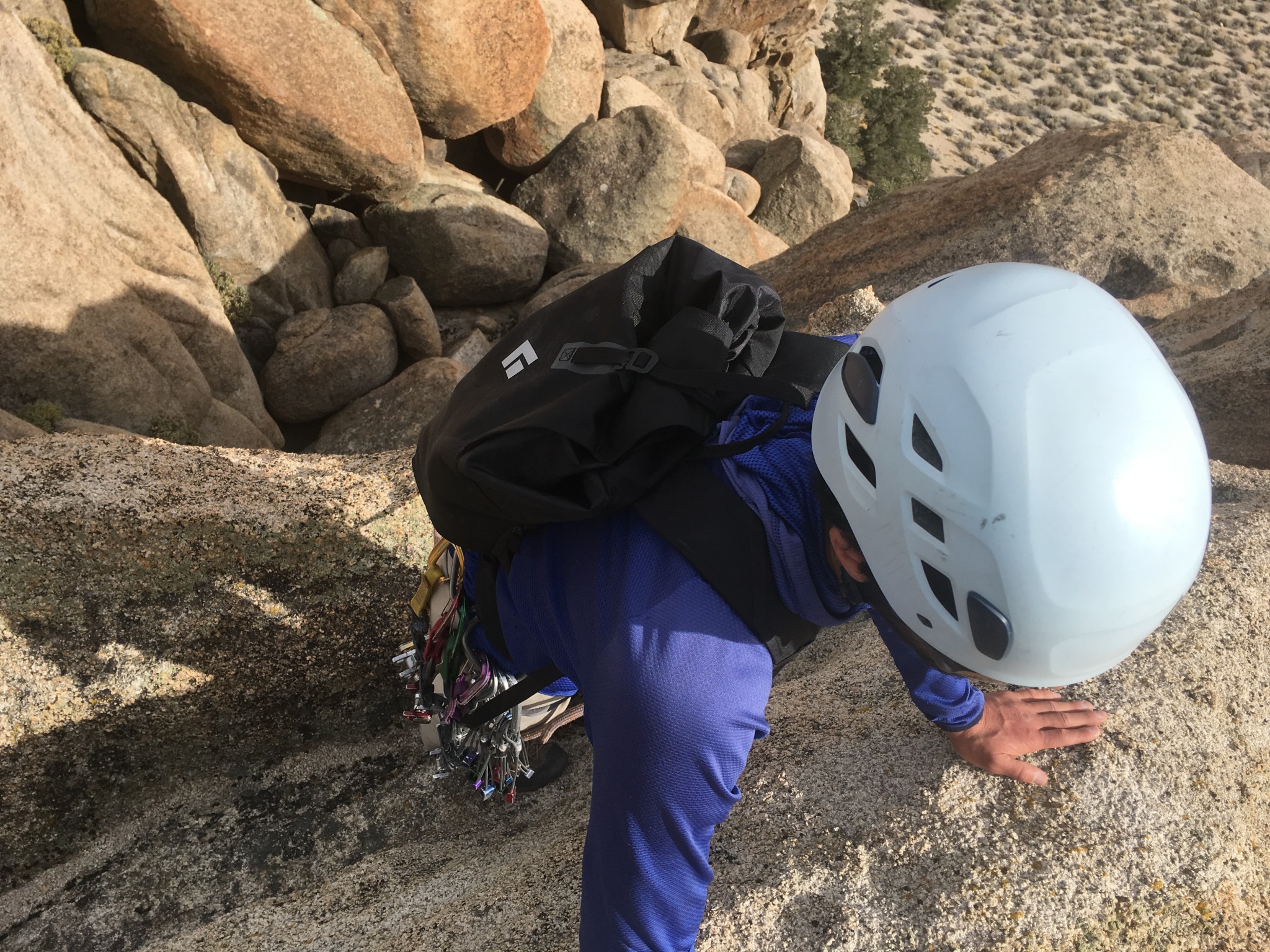 Our testers who are on the taller end of the scale found that the Rock Blitz rode in just the right place on their backs — not so low that it blocked access to their harnesses, but not so high that the back of their helmets hit the top of the pack when they looked up. Testing team members with medium to shorter torsos found that the pack regularly interfered with access to their chalk bags or gear clipped to the back of their harnesses. We strongly advise climbers with shorter torsos to try this pack before buying.