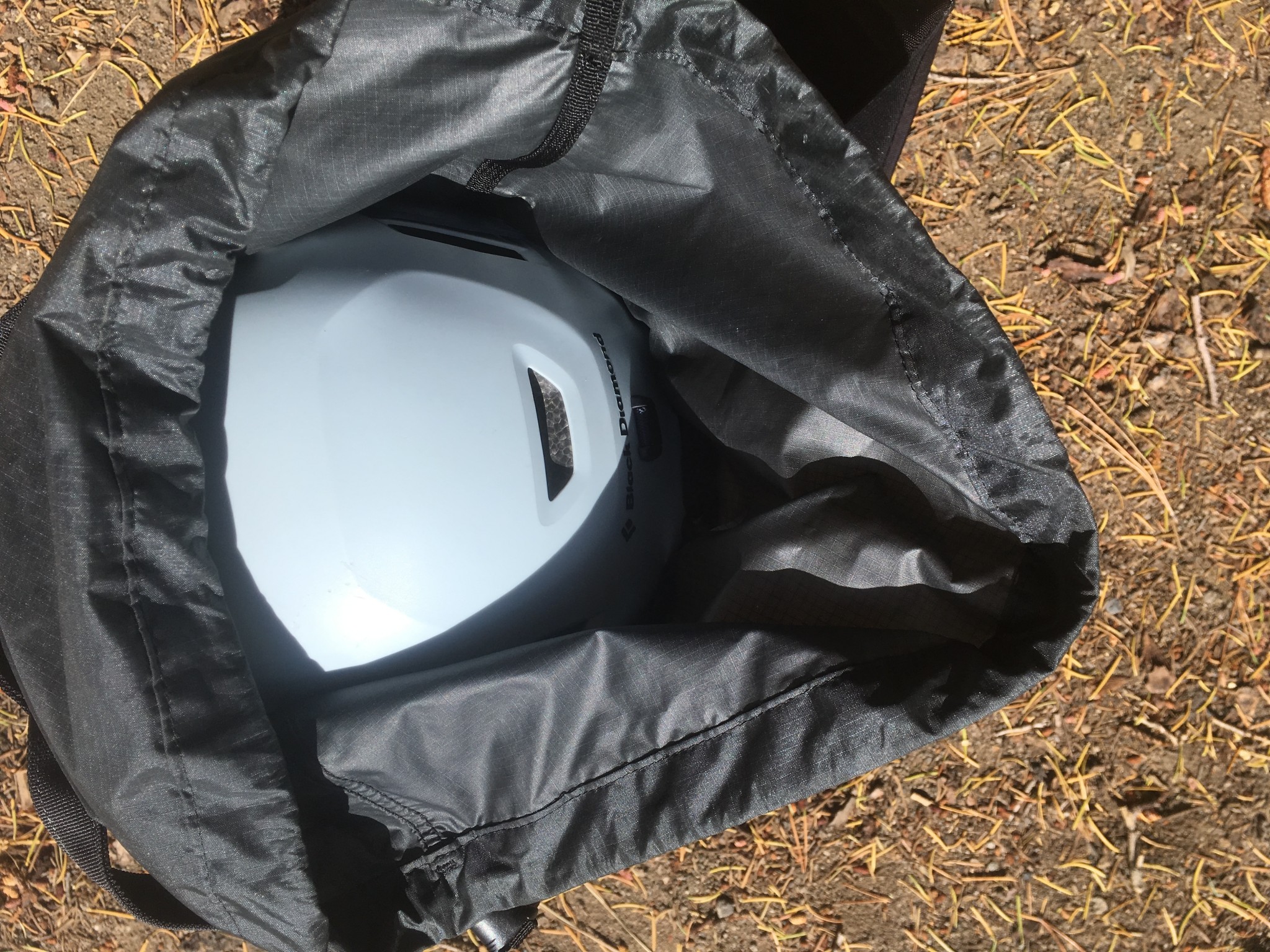 This pack uses 940 denier nylon on the body and bottom. It's pretty burly material for such a light bag and the only way we damaged it was by strapping a brand new pair of crampons to it. The bottom has a thin layer of foam built-in, which our testers think greatly helps with the durability. Our only long-term fabric worry is the thinner ripstop nylon fabric on the extension collar. If you're chimneying or hauling while the pack is overfilled, this could rub against the rock. It's not built to withstand that kind of abrasion, so be sure to use the rope/compression strap to keep things tidy.