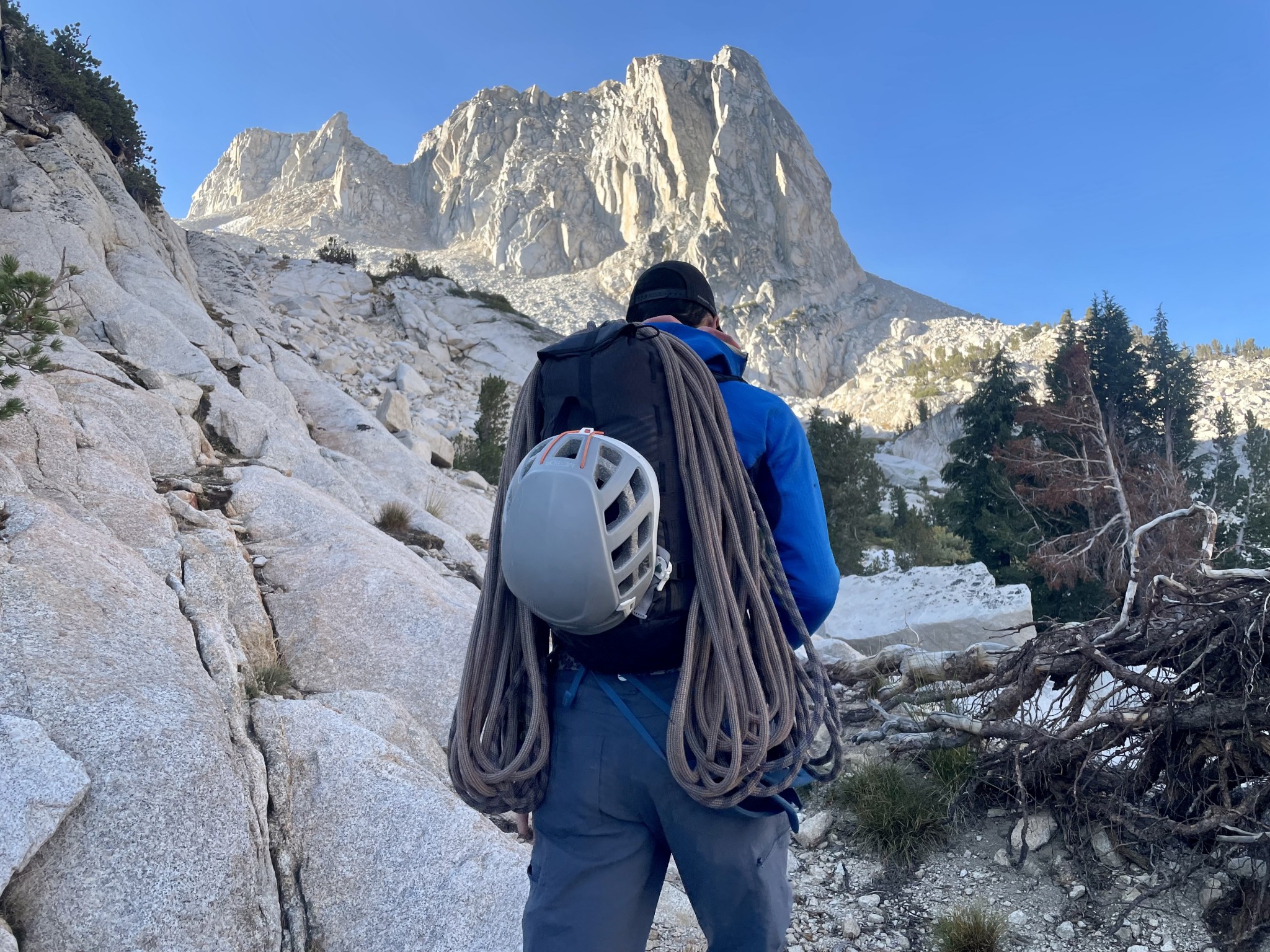 The back of the pack has integrated padding as well as removable foam. The stiffness of the foam was nice for heavier (or pointier) loads. Removing it allowed the pack to move with us better while climbing without sacrificing all padding.