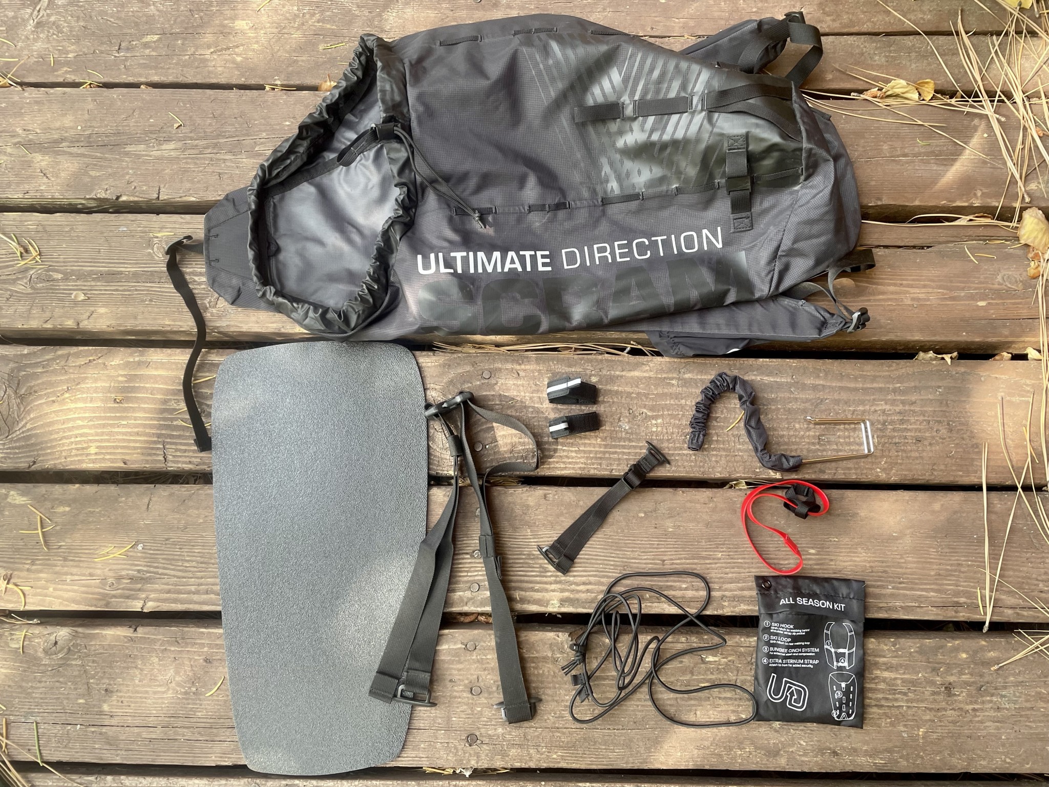 Ultimate Direction implies that the Scram is designed for skiing, climbing, running, and more. Get it, S.C.R.A.M.? The pack comes with a bunch of accessories for other sports that take a bit of fiddling to set up. While we didn't have the chance to test this pack's skiing and alpine climbing functionality during the late summer through early fall rock climbing season, we did try out the included ski and ice tool carry accessories at home, and they worked as advertised.