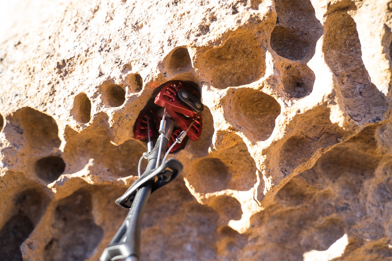 The C4's head with is the widest in the lineup, making them our last choice for weird, funky tight placements. The narrow-headed Totem Cams take the cake for these types of situations, even offering narrower cams in the hand sizes. In the finger size range, the Fixe Alien Revolutions are narrower and more flexible, increasing their performance and durability in pockets and weird holes. If you're a BD loyalist, the X4s are narrower and more flexible than the C4s and are available in sizes .1 to .75.