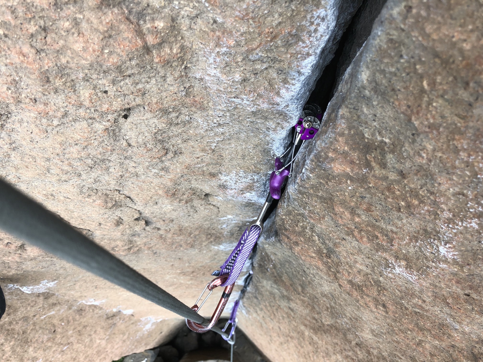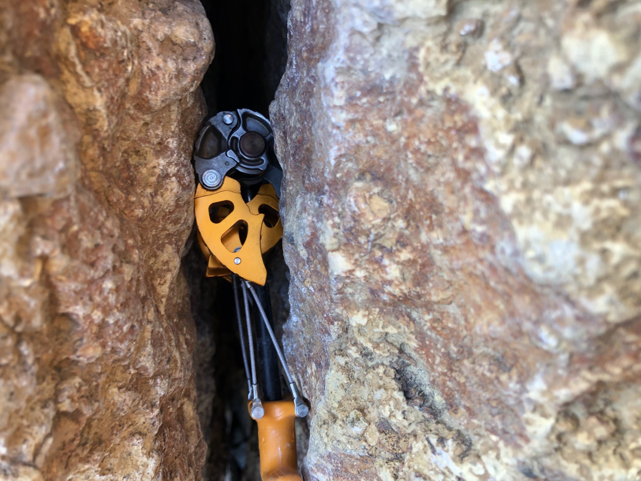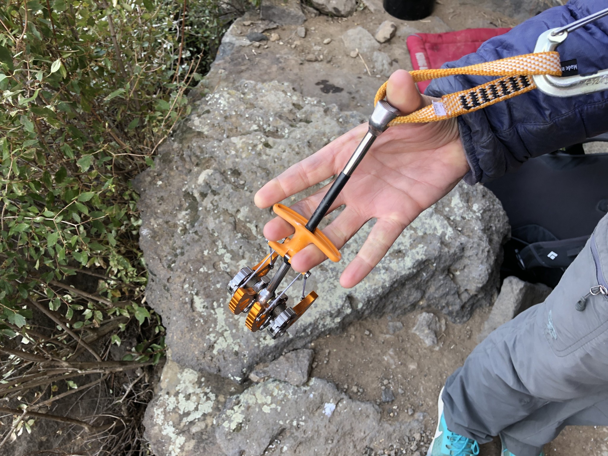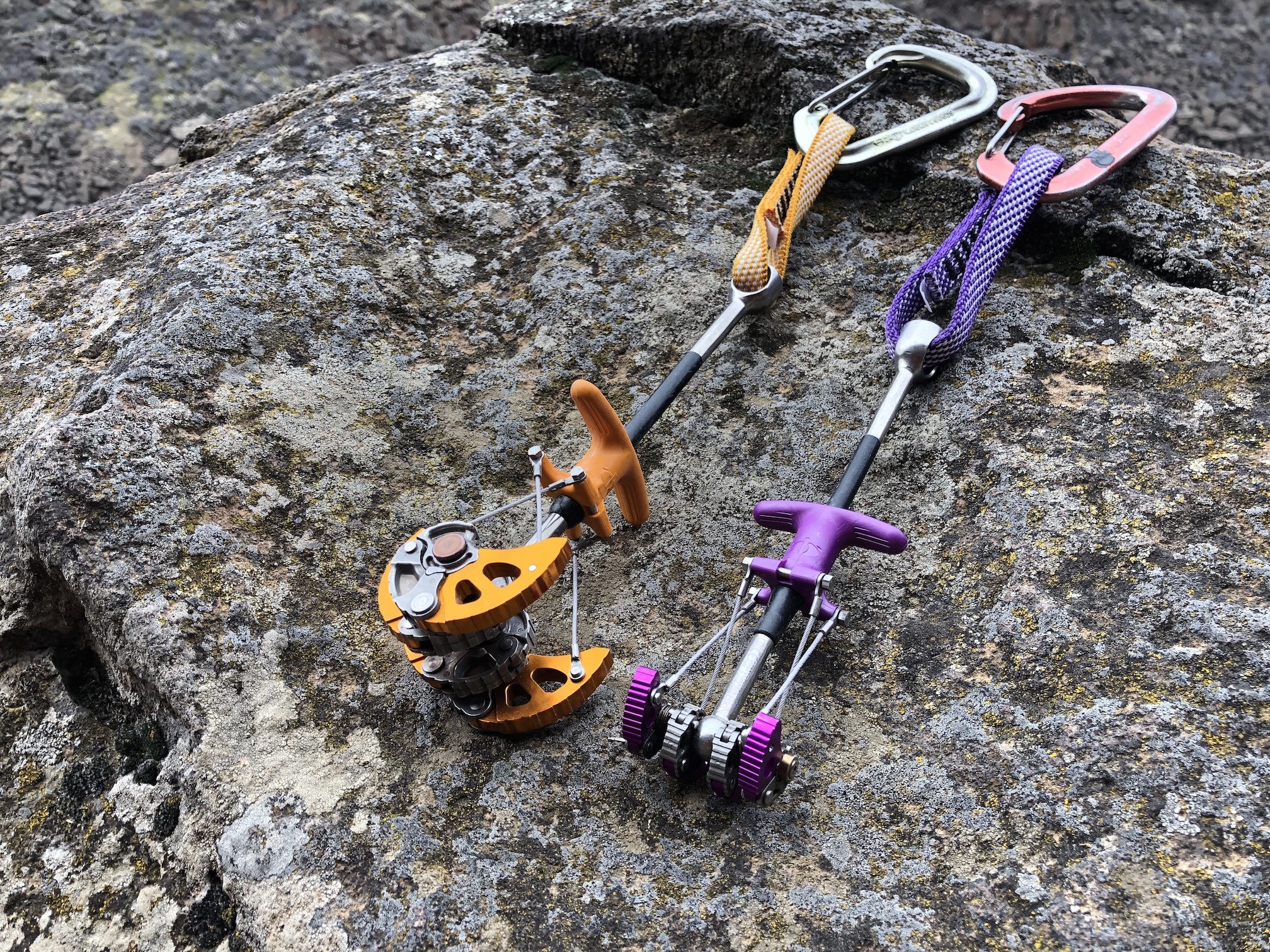 The obvious advantages to these cams are size versatility — you can carry less cams while not compromising on the sizes that you can protect. However, they have heaps of downsides that ensure they remain a supplementary addition to a rack, rather than its foundation. The single biggest issue is their potential durability. Simply put, the rivets in each lobe present potential breakage points, and a lot of care is needed to avoid weighting or especially torqueing these rivets, or the cam can break. Other issues include their weight, propensity to walk and get stuck, rigid stem and necessity of directional pull, and lack of thumb loop, which will be discussed in more detail below.