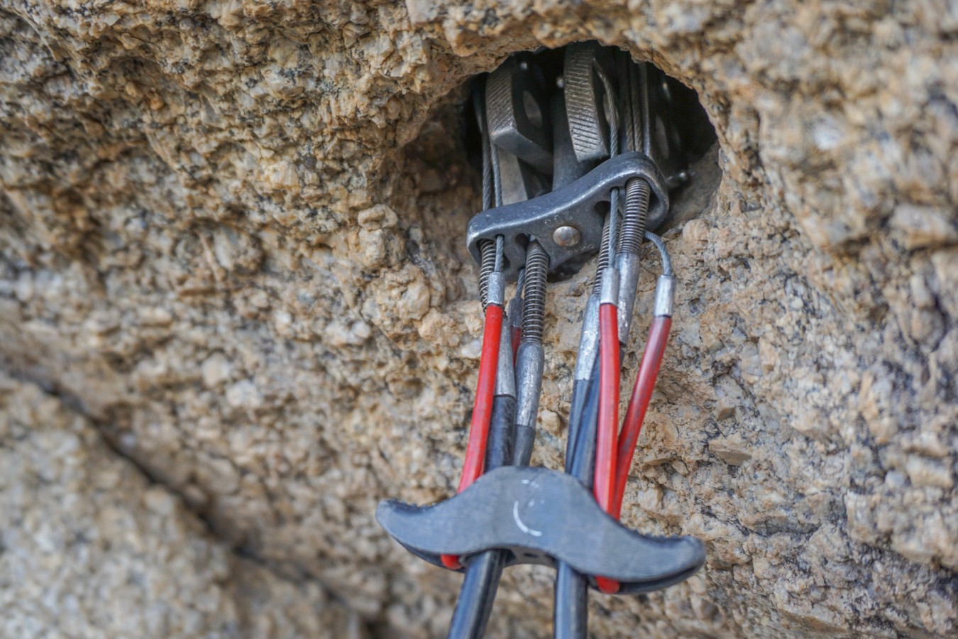 We also find that their independently loading lobes make them more secure in oddly shaped holes. Their oblong-shaped lobes tend to have more contact points with the rock. This makes for a stronger placement but also makes these cams a bit more difficult to extract if they get stuck since it's harder to get a nut tool between the cam lobe and the rock to pry it out. Experiment on the ground, place your cams carefully, and this won't be an issue.